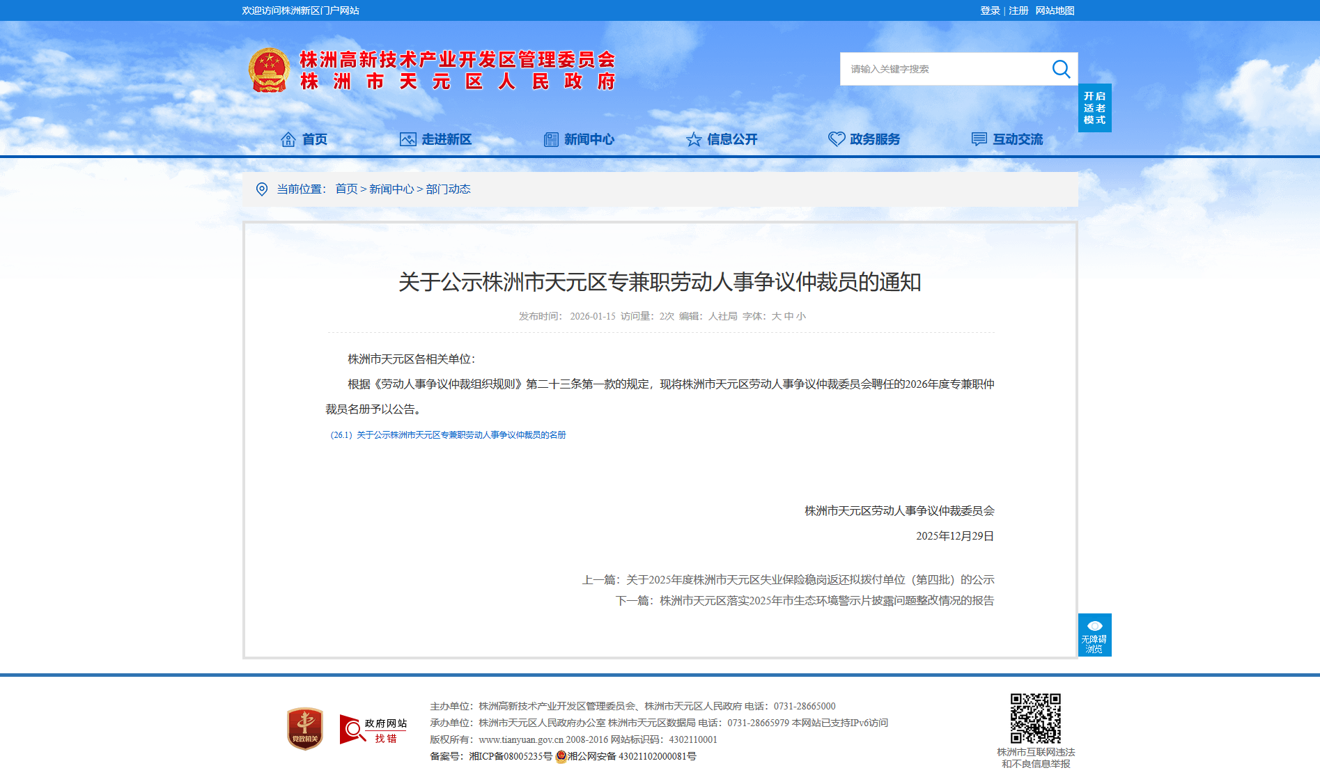 时间:2026-01-15 14:20:31 来源: 株洲市天元区人民政府 来源截图