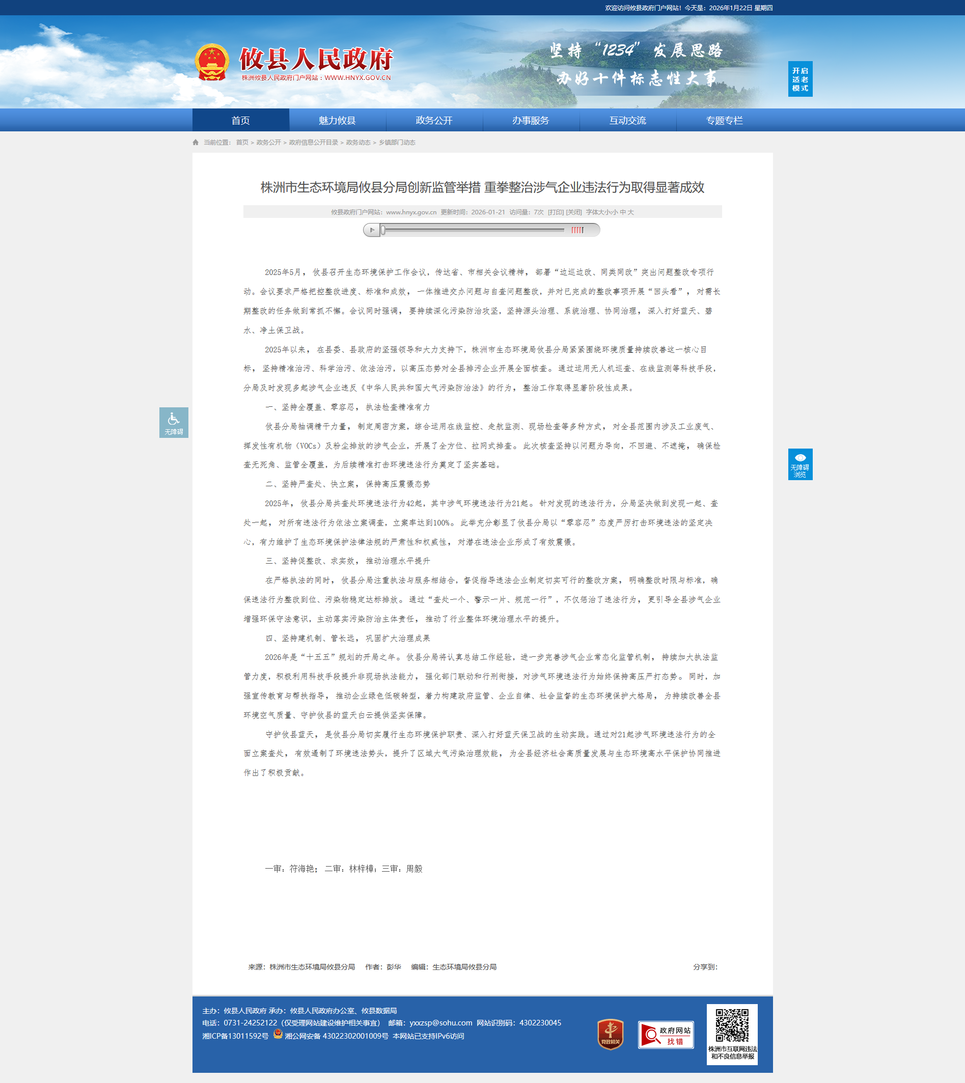 守护攸县蓝天,是攸县分局切实履行生态环境保护职责、深入打好蓝天保卫战的生动实践。通过对21起涉气环境违法行为的全面立案查处,有效遏制了环境违法势头,提升了区域大气污染治理效能,为全县经济社会高质量发展与生态环境高水平保护协同推进作出了积极贡献。