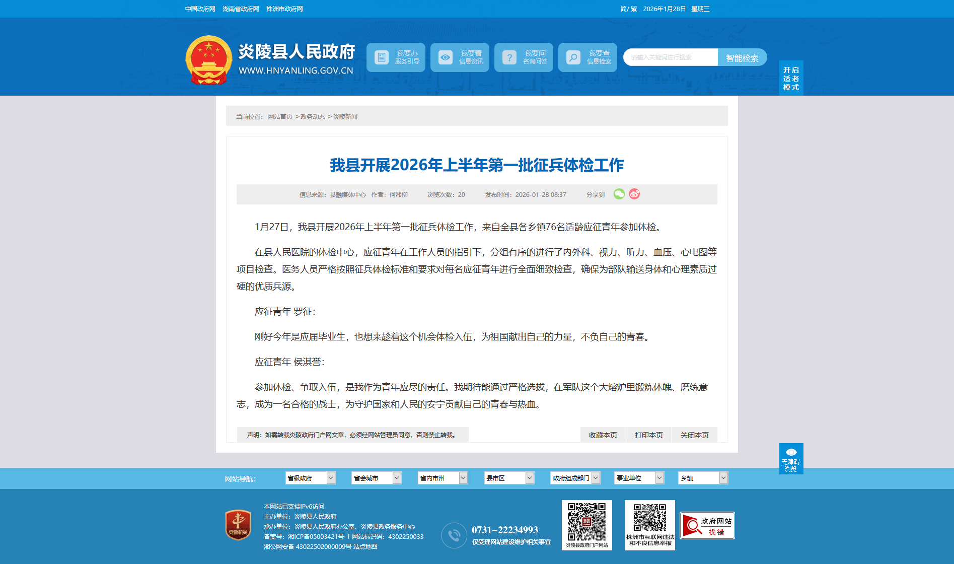 1月27日,我县开展2026年上半年第一批征兵体检工作,来自全县各乡镇76名适龄应征青年参加体检。