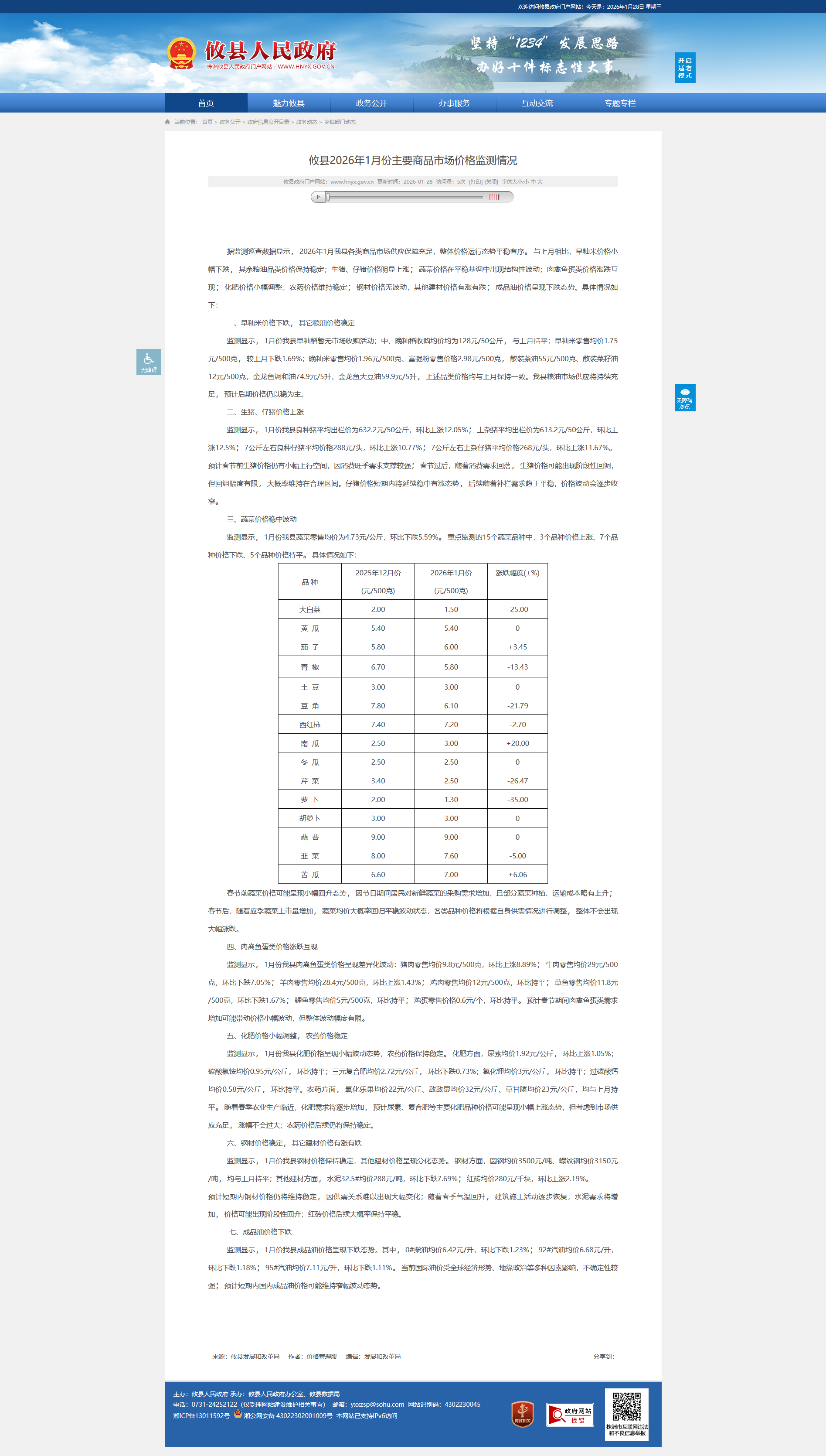 | 品 种 | 2025年12月份 (元/500克) | 2026年1月份 (元/500克) | 涨跌幅度(±%) |