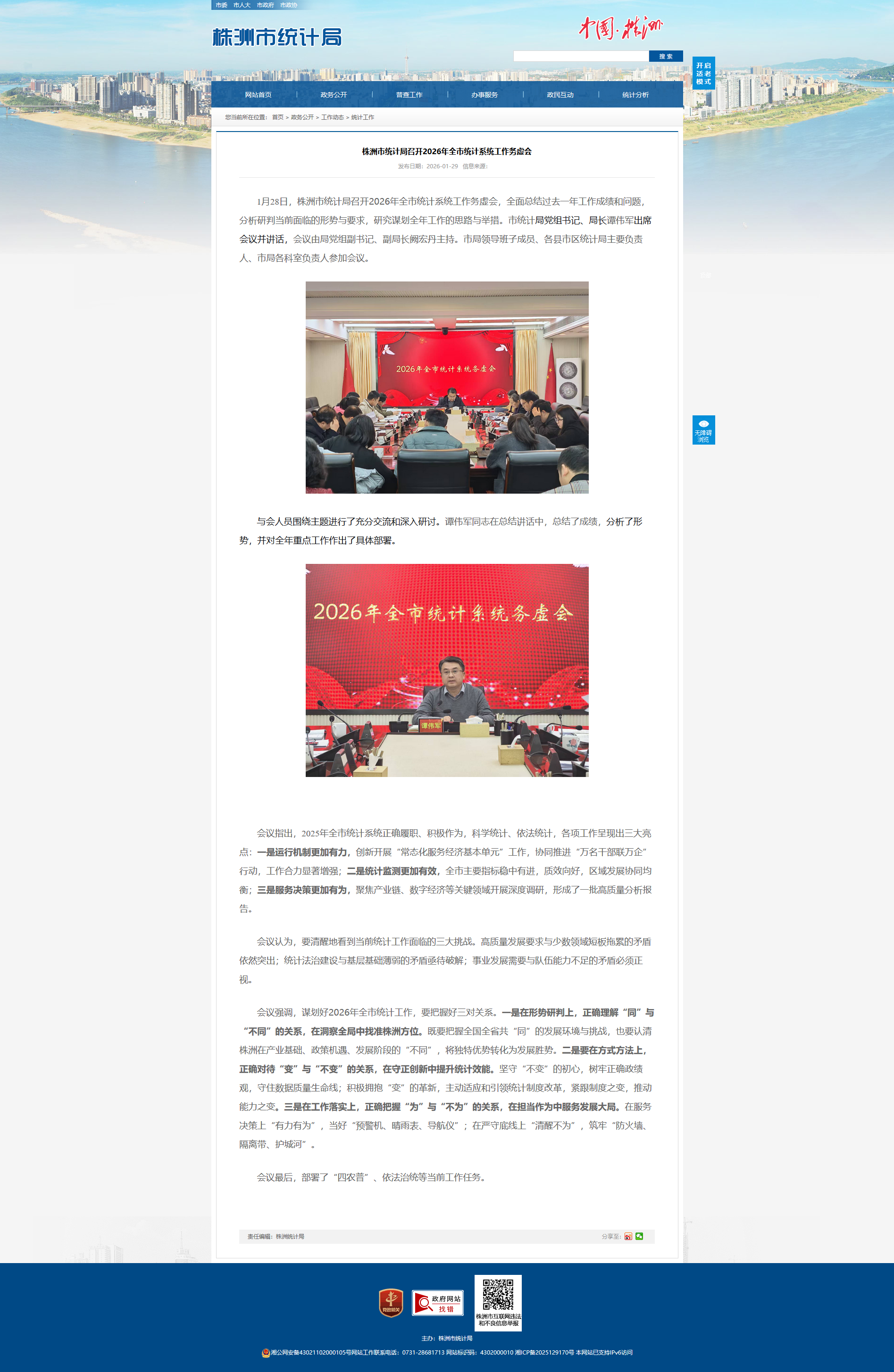 会议强调,谋划好2026年全市统计工作,要把握好三对关系。一是在形势研判上,正确理解“同”与“不同”的关系,在洞察全局中找准株洲方位。既要把握全国全省共“同”的发展环境与挑战,也要认清株洲在产业基础、政策机遇、发展阶段的“不同”,将独特优势转化为发展胜势。二是要在方式方法上,正确对待“变”与“不变”的关系,在守正创新中提升统计效能。坚守“不变”的初心,树牢正确政绩观,守住数据质量生命线;积极拥抱“变”的革新,主动适应和引领统计制度改革,紧跟制度之变,推动能力之变。三是在工作落实上,正确把握“为”与“不为”的关系,在担当作为中服务发展大局。在服务决策上“有力有为”,当好“预警机、晴雨表、导航仪”;在严守底线上“清醒不为”,筑牢“防火墙、隔离带、护城河”。