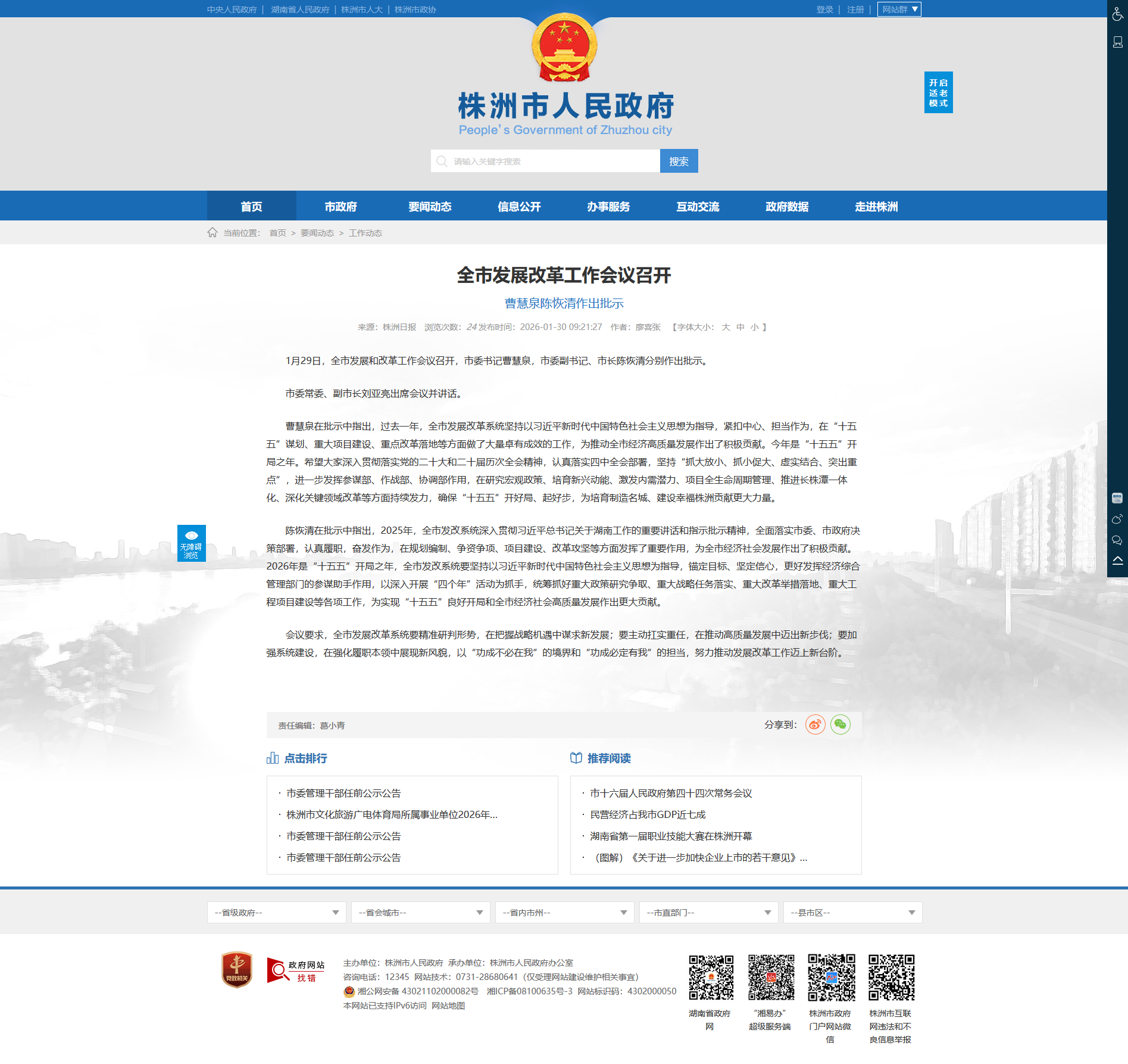 陈恢清在批示中指出,2025年,全市发改系统深入贯彻习近平总书记关于湖南工作的重要讲话和指示批示精神,全面落实市委、市政府决策部署,认真履职,奋发作为,在规划编制、争资争项、项目建设、改革攻坚等方面发挥了重要作用,为全市经济社会发展作出了积极贡献。2026年是“十五五”开局之年,全市发改系统要坚持以习近平新时代中国特色社会主义思想为指导,锚定目标、坚定信心,更好发挥经济综合管理部门的参谋助手作用,以深入开展“四个年”活动为抓手,统筹抓好重大政策研究争取、重大战略任务落实、重大改革举措落地、重大工程项目建设等各项工作,为实现“十五五”良好开局和全市经济社会高质量发展作出更大贡献。