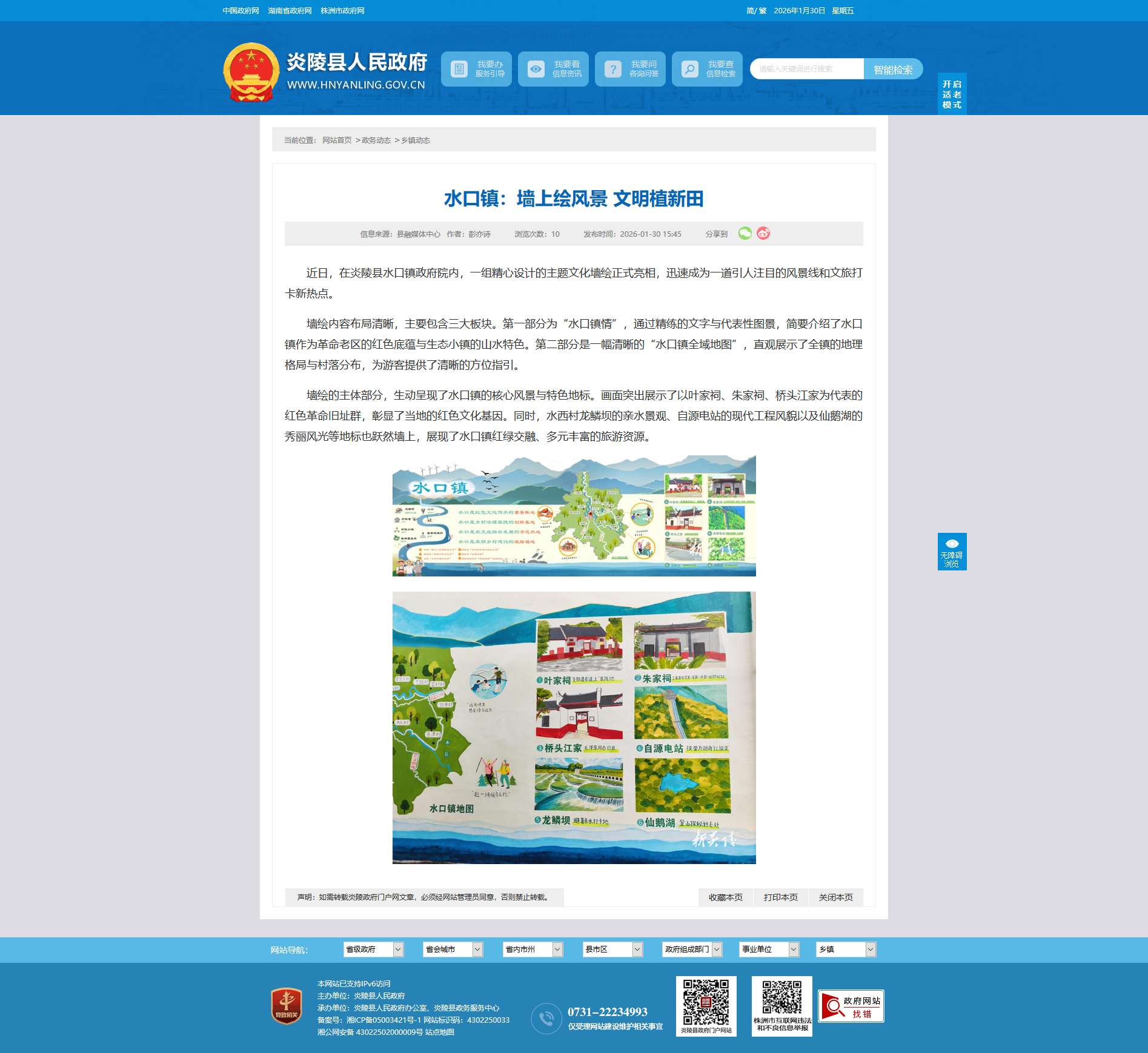 近日,在炎陵县水口镇政府院内,一组精心设计的主题文化墙绘正式亮相,迅速成为一道引人注目的风景线和文旅打卡新热点。