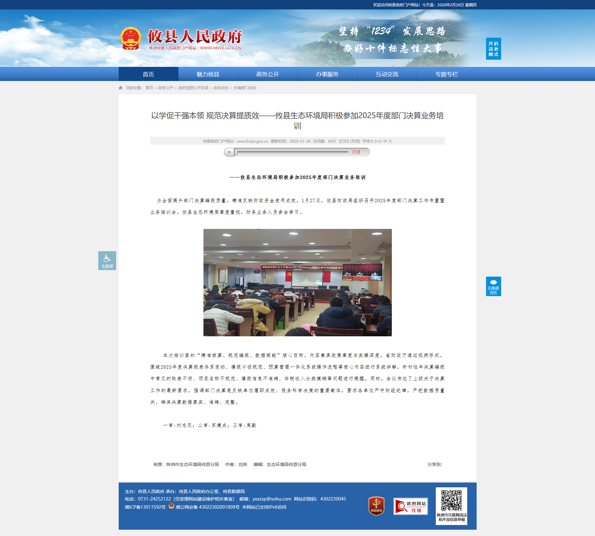 为全面提升部门决算编报质量,精准反映财政资金使用成效,1月27日,攸县财政局组织召开2025年度部门决算工作布置暨业务培训会,攸县生态环境局高度重视,财务业务人员参会学习。