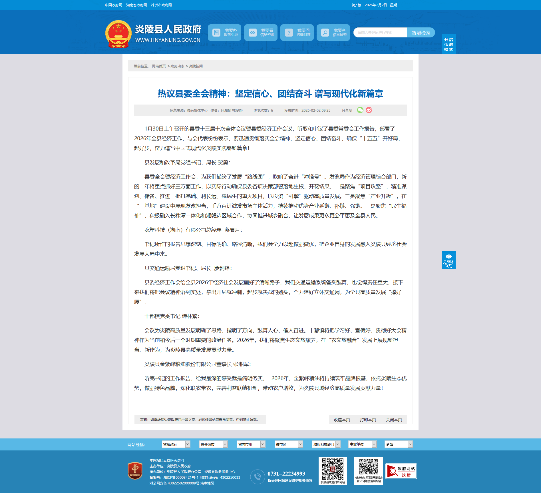 1月30日上午召开的县委十三届十次全体会议暨县委经济工作会议,听取和审议了县委常委会工作报告,部署了2026年全县经济工作,与会代表纷纷表示,要迅速贯彻落实全会精神,坚定信心、团结奋斗,确保“十五五”开好局、起好步,奋力谱写中国式现代化炎陵实践崭新篇章!