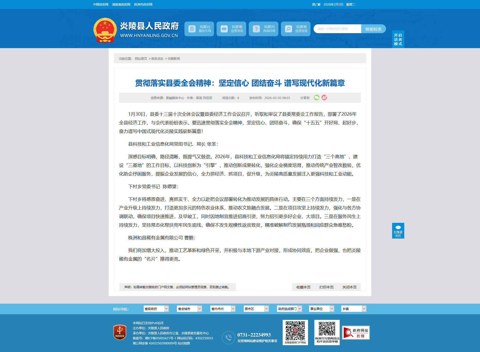 深感目标明确,路径清晰,既提气又鼓劲。2026年,县科技和工业信息化局将锚定持续用力打造“三个高地”、建设“三基地”的工作目标,以科技创新为“引擎”,推动创新成果转化,强化企业梯度培育,推动传统产业智改数转,优化助企纾困服务,提振企业发展的信心,全力拼经济、抓项目,促升级,为炎陵高质量发展注入更强科技和工业动能。