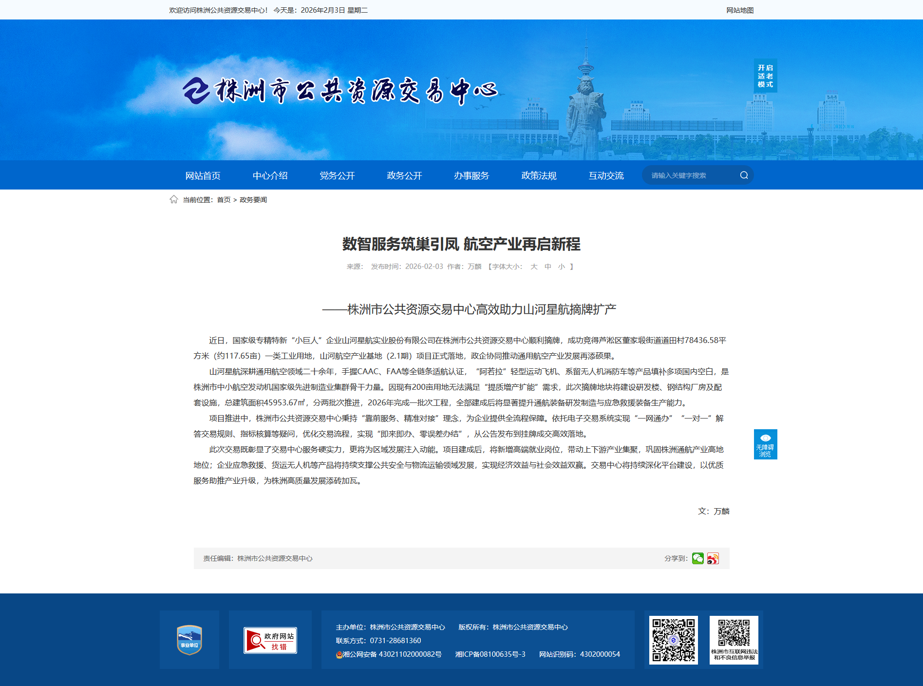 ——株洲市公共资源交易中心高效助力山河星航摘牌扩产