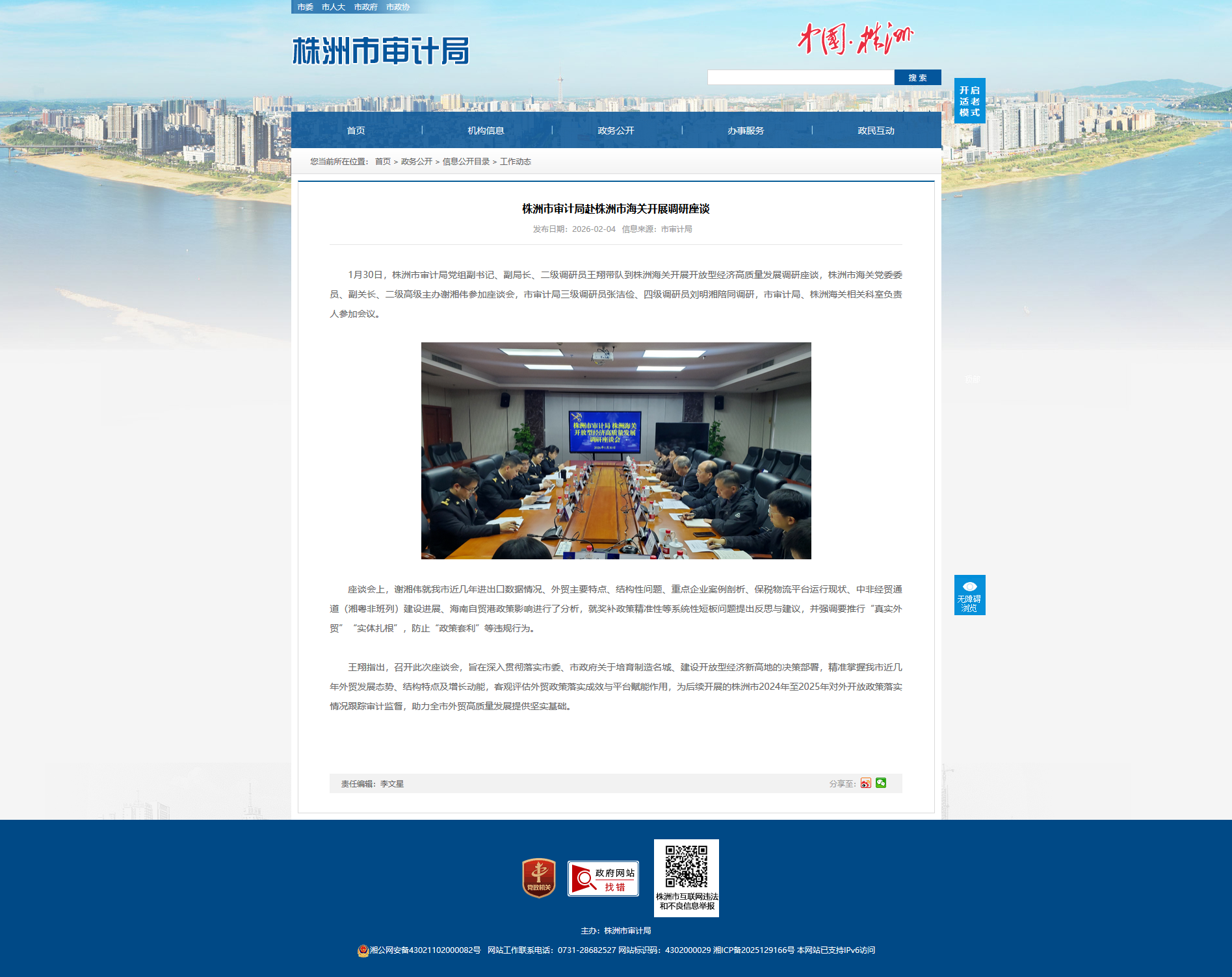 1月30日,株洲市审计局党组副书记、副局长、二级调研员王翔带队到株洲海关开展开放型经济高质量发展调研座谈,株洲市海关党委委员、副关长、二级高级主办谢湘伟参加座谈会,市审计局三级调研员张洁俭、四级调研员刘明湘陪同调研,市审计局、株洲海关相关科室负责人参加会议。