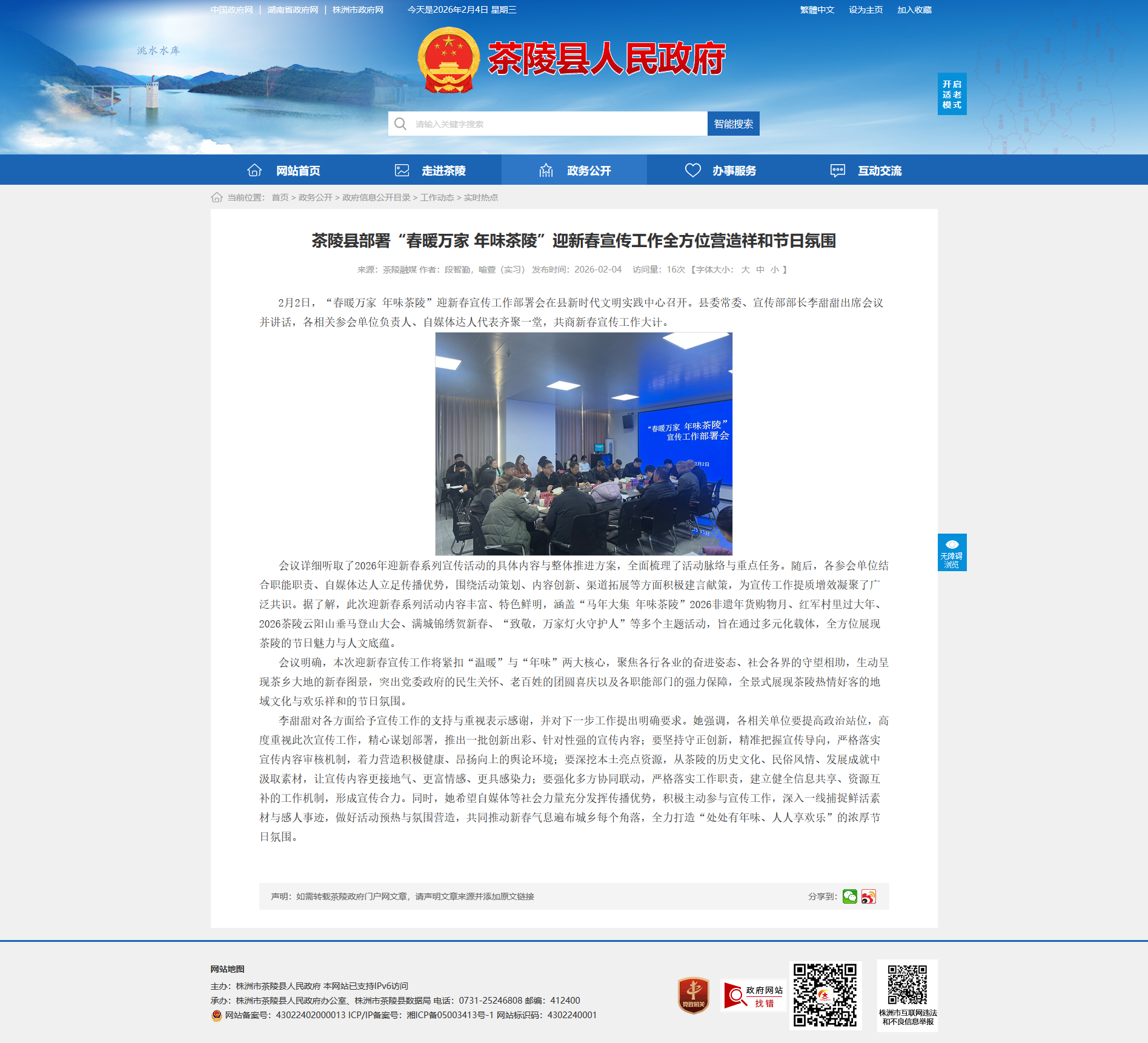 会议明确,本次迎新春宣传工作将紧扣“温暖”与“年味”两大核心,聚焦各行各业的奋进姿态、社会各界的守望相助,生动呈现茶乡大地的新春图景,突出党委政府的民生关怀、老百姓的团圆喜庆以及各职能部门的强力保障,全景式展现茶陵热情好客的地域文化与欢乐祥和的节日氛围。