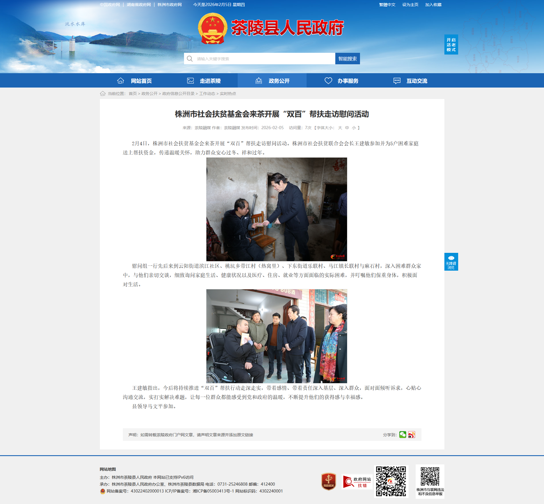 2月4日,株洲市社会扶贫基金会来茶开展“双百”帮扶走访慰问活动。株洲市社会扶贫联合会会长王建敏参加并为5户困难家庭送上帮扶资金,传递温暖关怀,助力群众安心过冬、祥和过年。