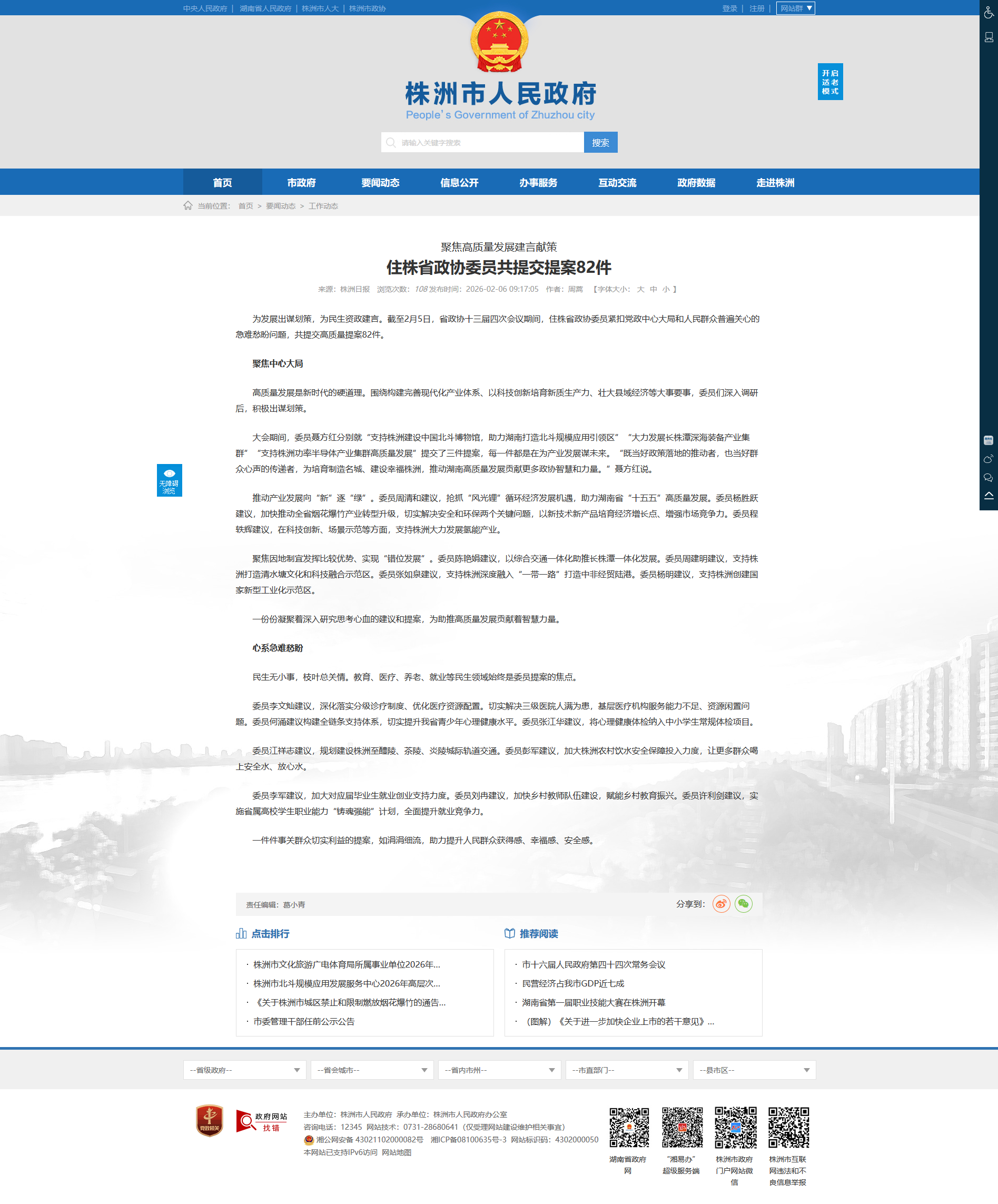为发展出谋划策,为民生资政建言。截至2月5日,省政协十三届四次会议期间,住株省政协委员紧扣党政中心大局和人民群众普遍关心的急难愁盼问题,共提交高质量提案82件。
