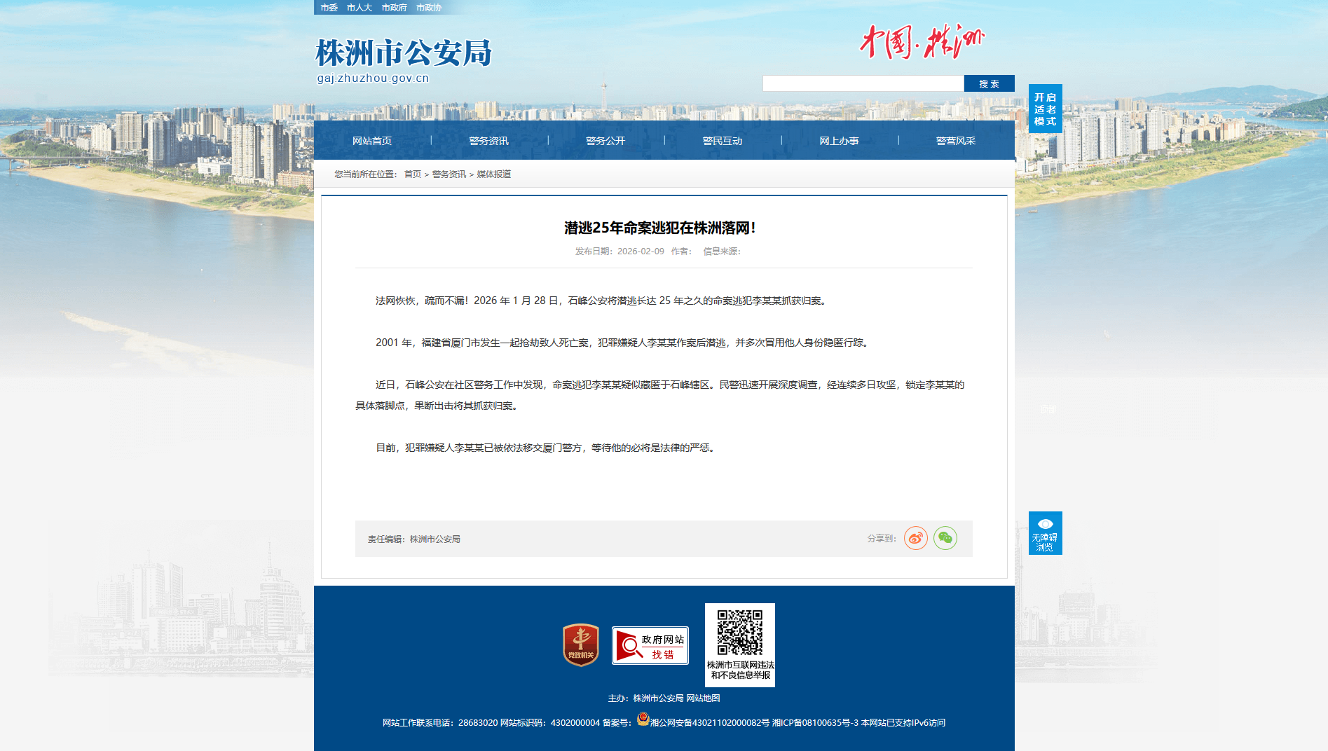 时间:2026-02-09 00:00:00 来源: 株洲市公安局 来源截图