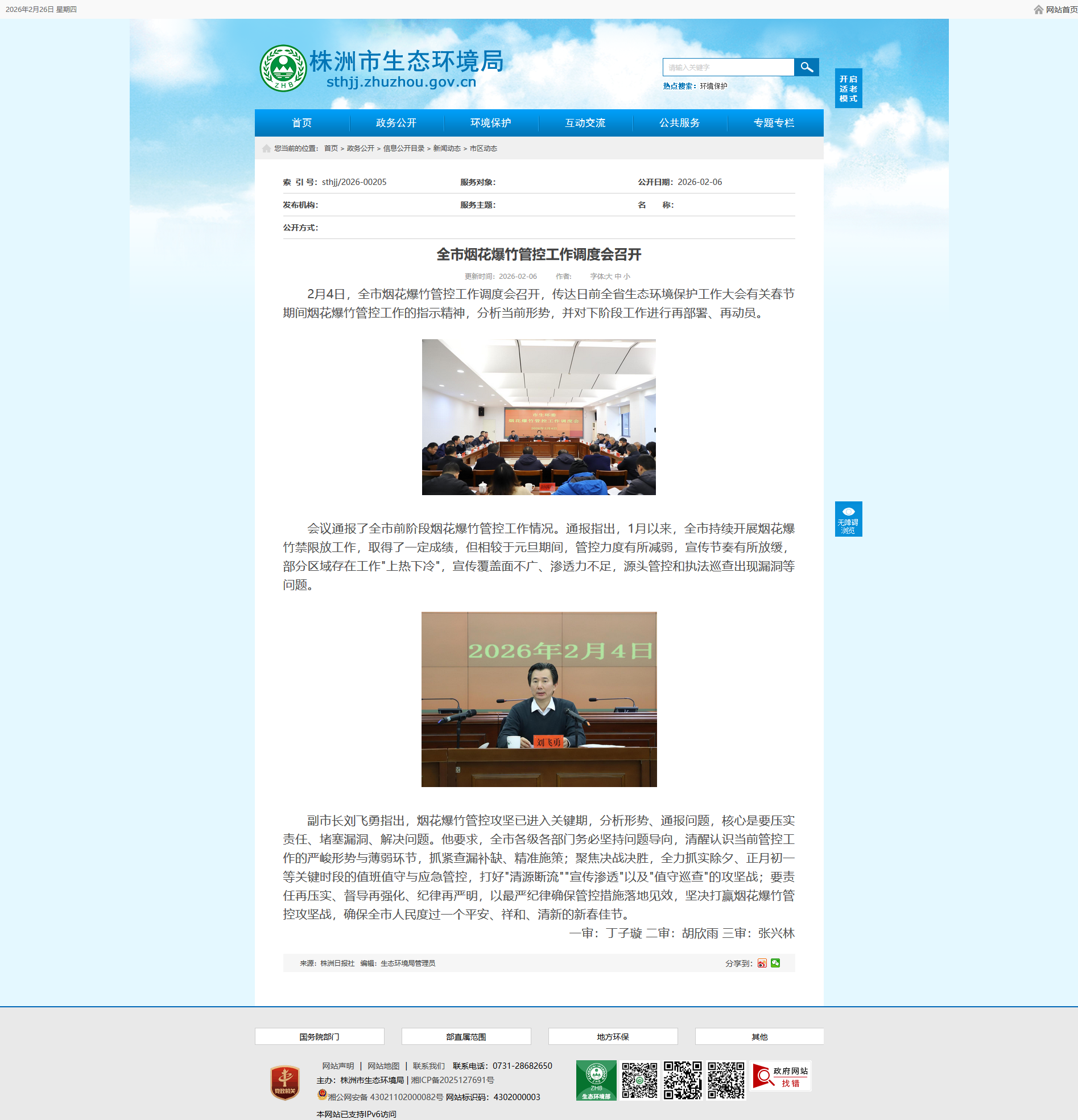 2月4日,全市烟花爆竹管控工作调度会召开,传达日前全省生态环境保护工作大会有关春节期间烟花爆竹管控工作的指示精神,分析当前形势,并对下阶段工作进行再部署、再动员。