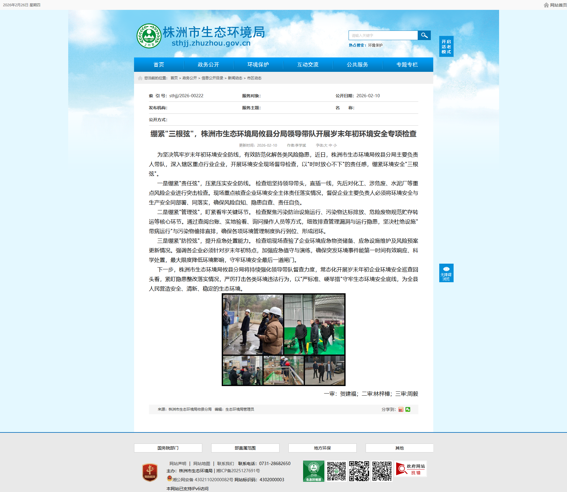 为坚决筑牢岁末年初环境安全防线,有效防范化解各类风险隐患,近日,株洲市生态环境局攸县分局主要负责人带队,深入辖区重点行业企业,开展环境安全现场督导检查,以"时时放心不下"的责任感,绷紧环境安全"三根弦"。