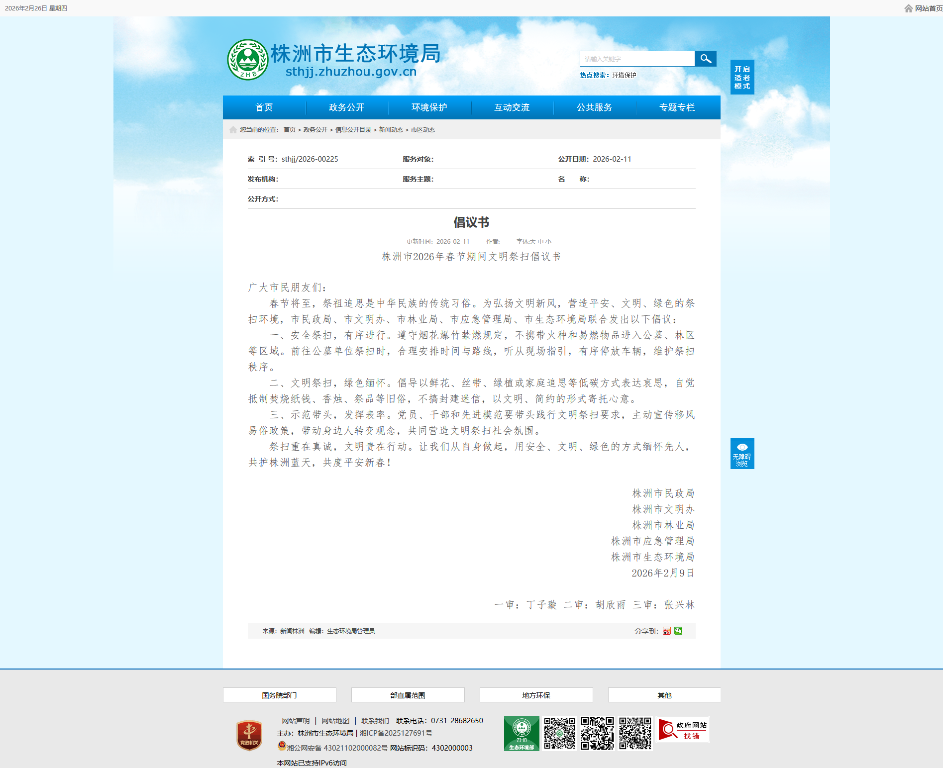株洲市2026年春节期间文明祭扫倡议书