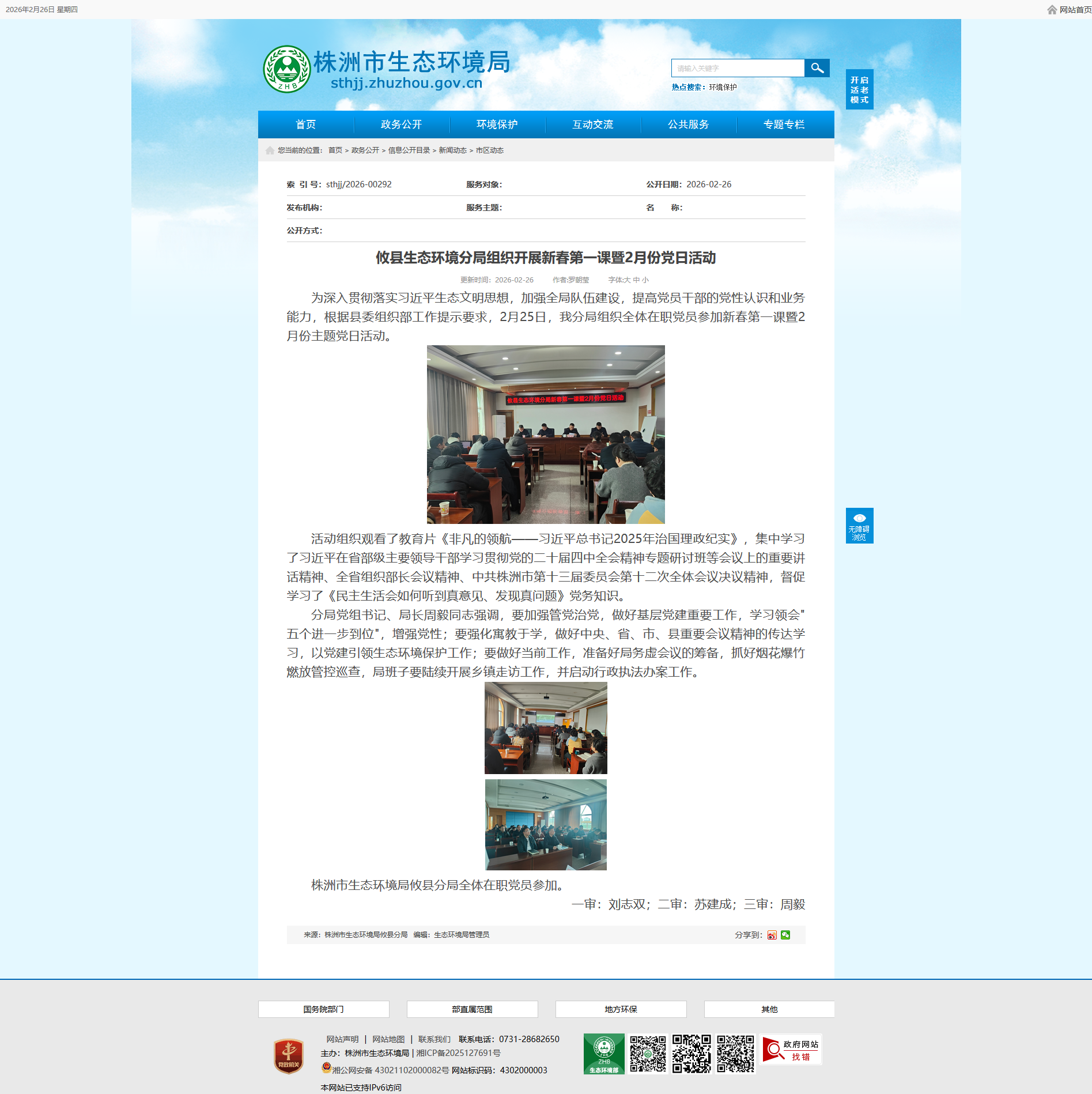 为深入贯彻落实习近平生态文明思想,加强全局队伍建设,提高党员干部的党性认识和业务能力,根据县委组织部工作提示要求,2月25日,我分局组织全体在职党员参加新春第一课暨2月份主题党日活动。