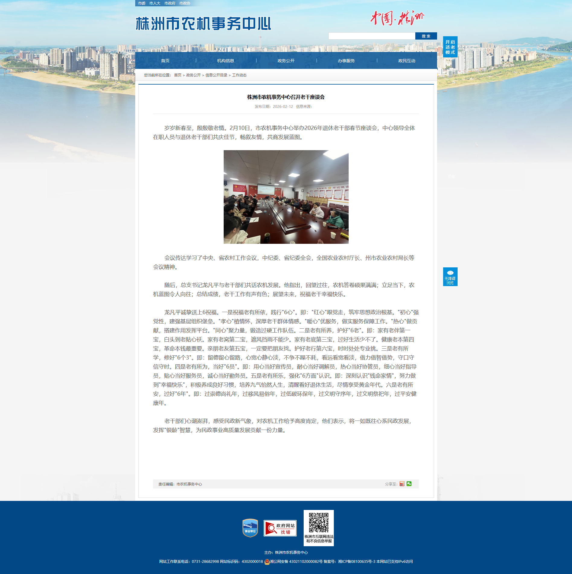 岁岁新春至,殷殷敬老情。2月10日,市农机事务中心举办2026年退休老干部春节座谈会,中心领导全体在职人员与退休老干部们共庆佳节,畅叙友情,共商发展蓝图。