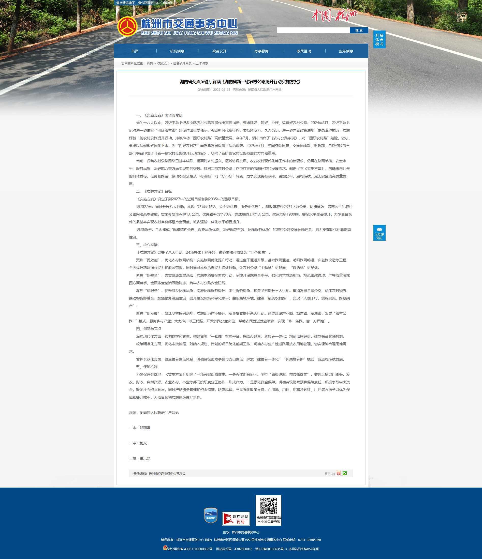 到2035年:全面建成“规模结构合理、设施品质优良、治理规范有效、运输服务优质”的农村公路交通运输体系,有力支撑现代化新湖南建设。