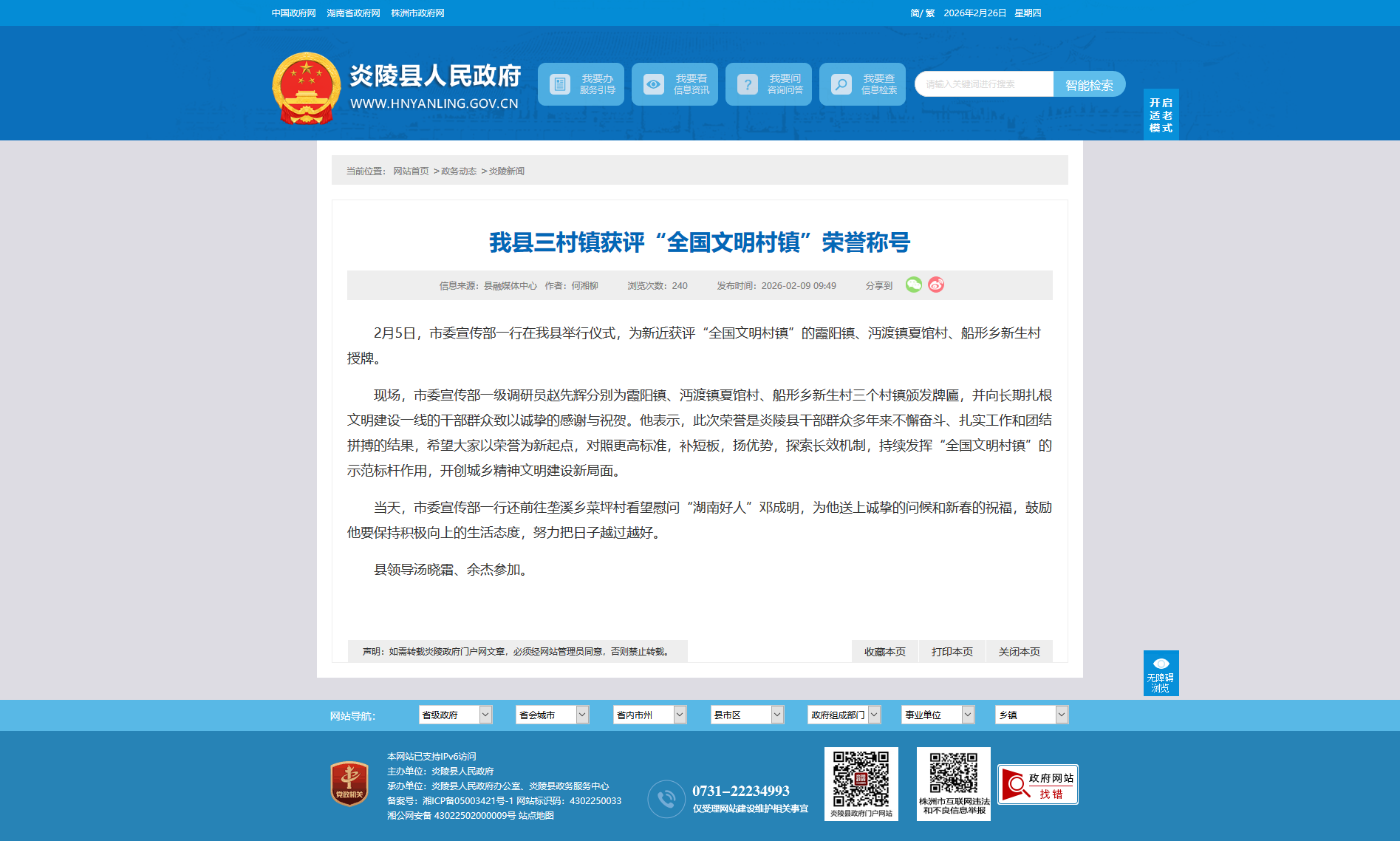 现场,市委宣传部一级调研员赵先辉分别为霞阳镇、沔渡镇夏馆村、船形乡新生村三个村镇颁发牌匾,并向长期扎根文明建设一线的干部群众致以诚挚的感谢与祝贺。他表示,此次荣誉是炎陵县干部群众多年来不懈奋斗、扎实工作和团结拼搏的结果,希望大家以荣誉为新起点,对照更高标准,补短板,扬优势,探索长效机制,持续发挥“全国文明村镇”的示范标杆作用,开创城乡精神文明建设新局面。