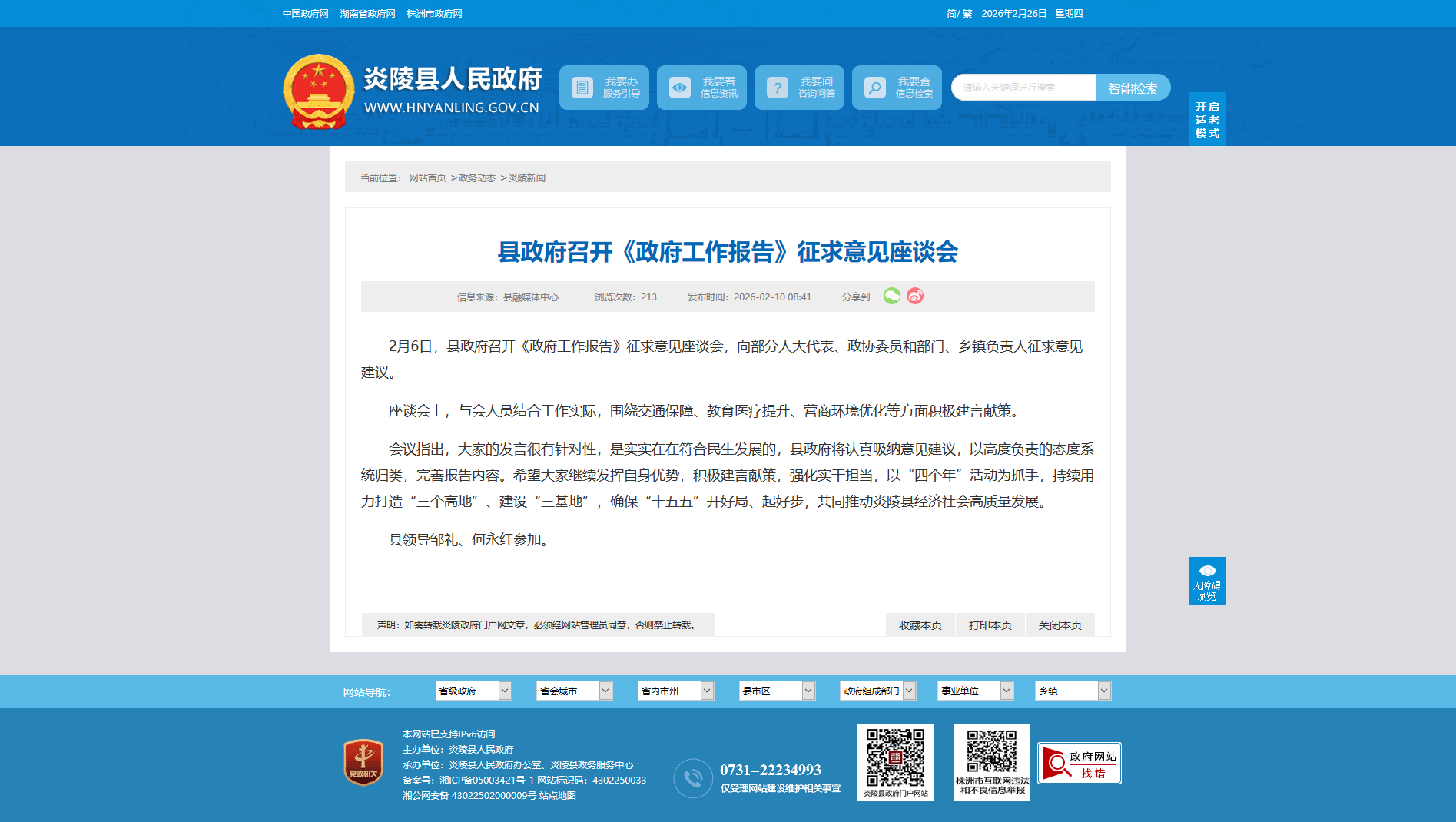 会议指出,大家的发言很有针对性,是实实在在符合民生发展的,县政府将认真吸纳意见建议,以高度负责的态度系统归类,完善报告内容。希望大家继续发挥自身优势,积极建言献策,强化实干担当,以“四个年”活动为抓手,持续用力打造“三个高地”、建设“三基地”,确保“十五五”开好局、起好步,共同推动炎陵县经济社会高质量发展。