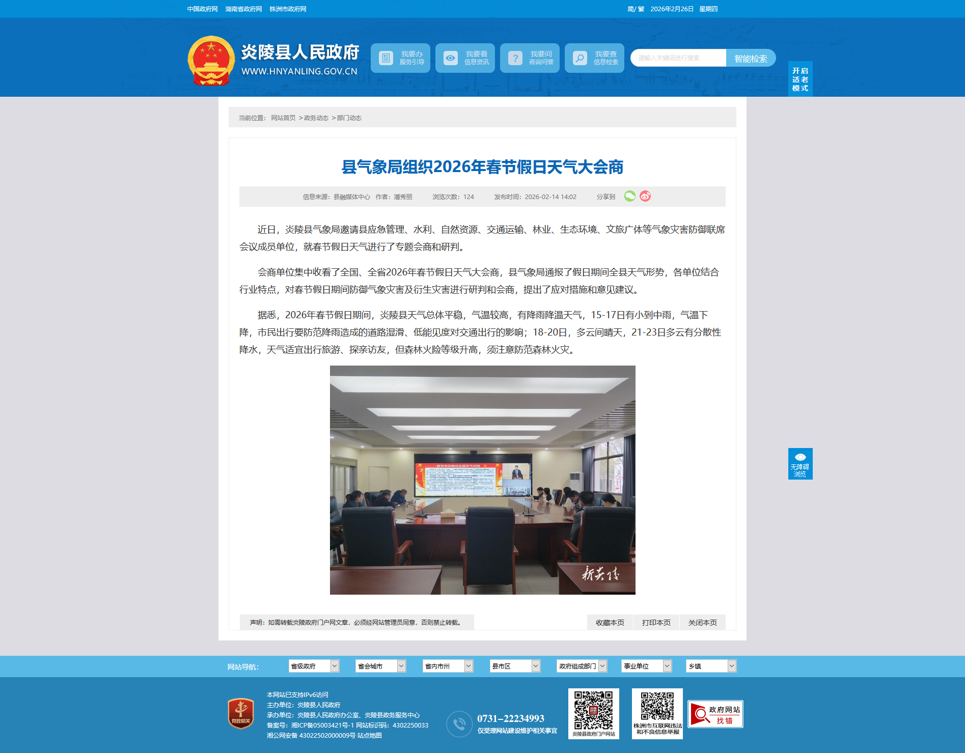 近日,炎陵县气象局邀请县应急管理、水利、自然资源、交通运输、林业、生态环境、文旅广体等气象灾害防御联席会议成员单位,就春节假日天气进行了专题会商和研判。