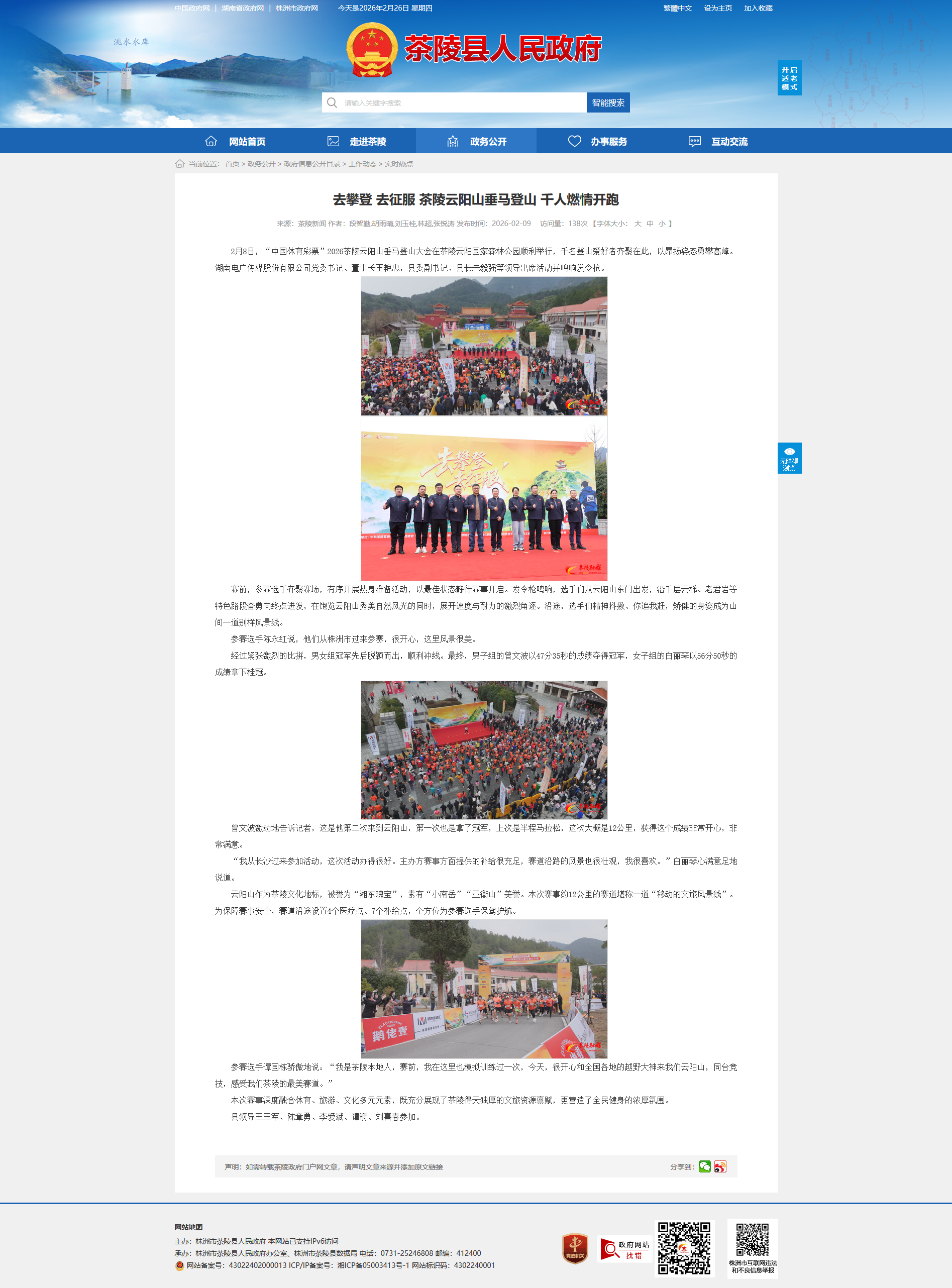 2月8日,“中国体育彩票”2026茶陵云阳山垂马登山大会在茶陵云阳国家森林公园顺利举行,千名登山爱好者齐聚在此,以昂扬姿态勇攀高峰。湖南电广传媒股份有限公司党委书记、董事长王艳忠,县委副书记、县长朱毅强等领导出席活动并鸣响发令枪。