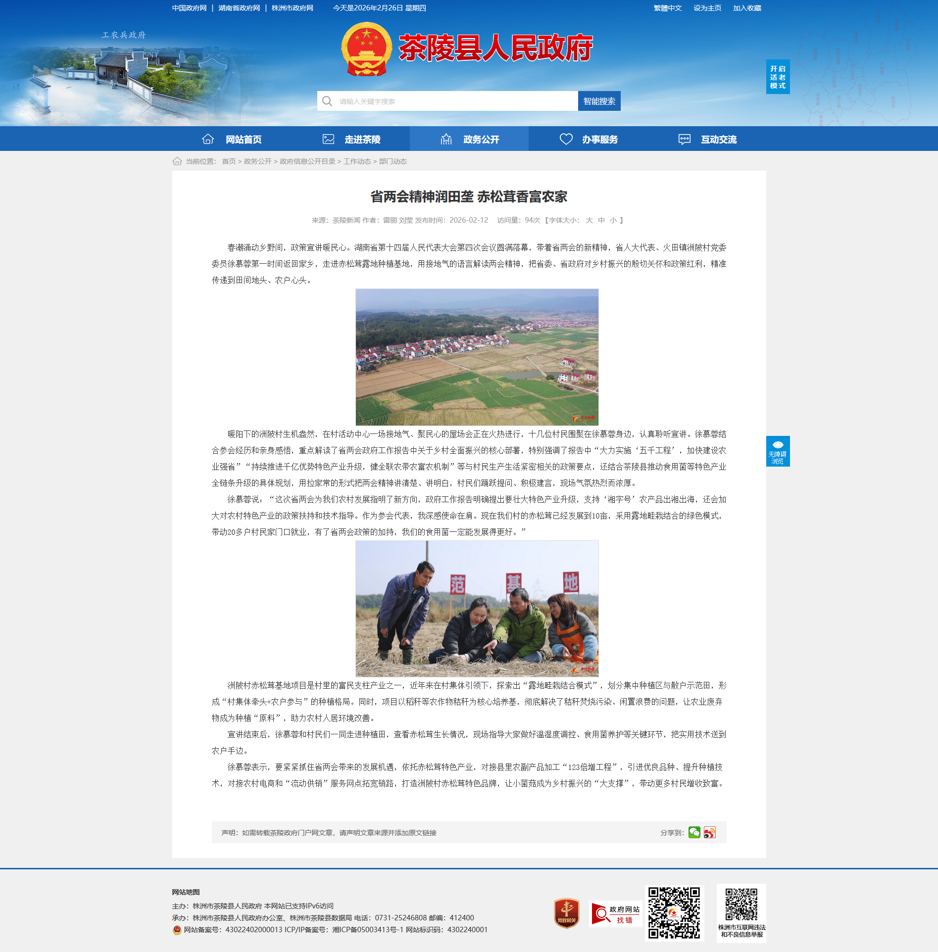 徐慕蓉说:“这次省两会为我们农村发展指明了新方向,政府工作报告明确提出要壮大特色产业升级,支持‘湘字号’农产品出湘出海,还会加大对农村特色产业的政策扶持和技术指导。作为参会代表,我深感使命在肩。现在我们村的赤松茸已经发展到10亩,采用露地畦栽结合的绿色模式,带动20多户村民家门口就业,有了省两会政策的加持,我们的食用菌一定能发展得更好。”