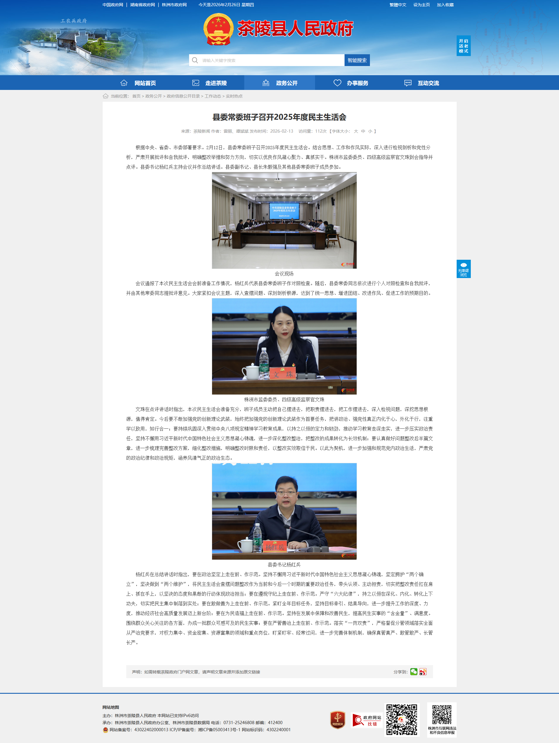 根据中央、省委、市委部署要求。2月12日,县委常委班子召开2025年度民主生活会。结合思想、工作和作风实际,深入进行检视剖析和党性分析,严肃开展批评和自我批评,明确整改举措和努力方向,切实以优良作风凝心聚力、真抓实干。株洲市监委委员、四级高级监察官文珠到会指导并点评。县委书记杨红兵主持会议并作总结讲话。县委副书记、县长朱毅强及其他县委常委班子成员参加。