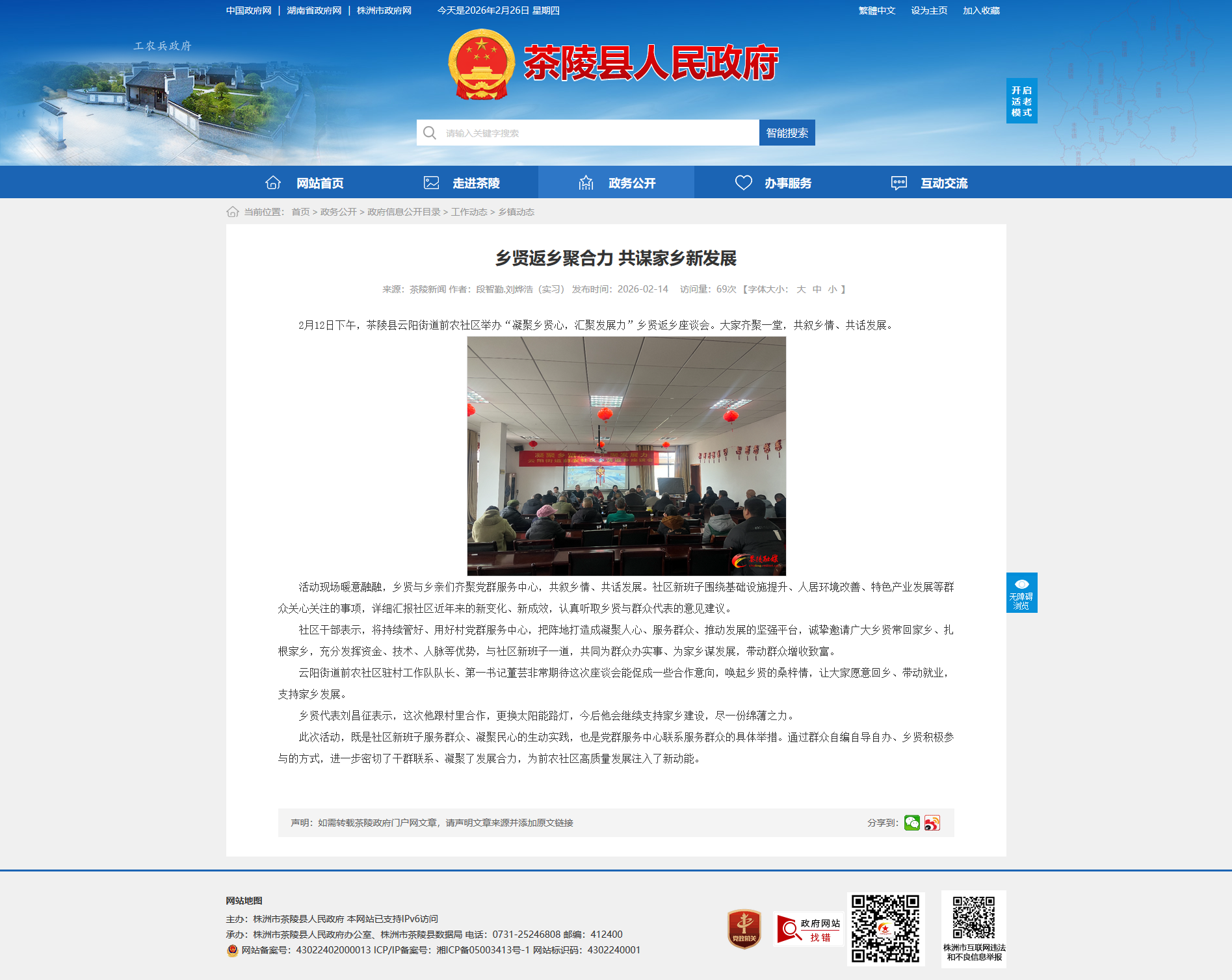 2月12日下午,茶陵县云阳街道前农社区举办“凝聚乡贤心,汇聚发展力”乡贤返乡座谈会。大家齐聚一堂,共叙乡情、共话发展。