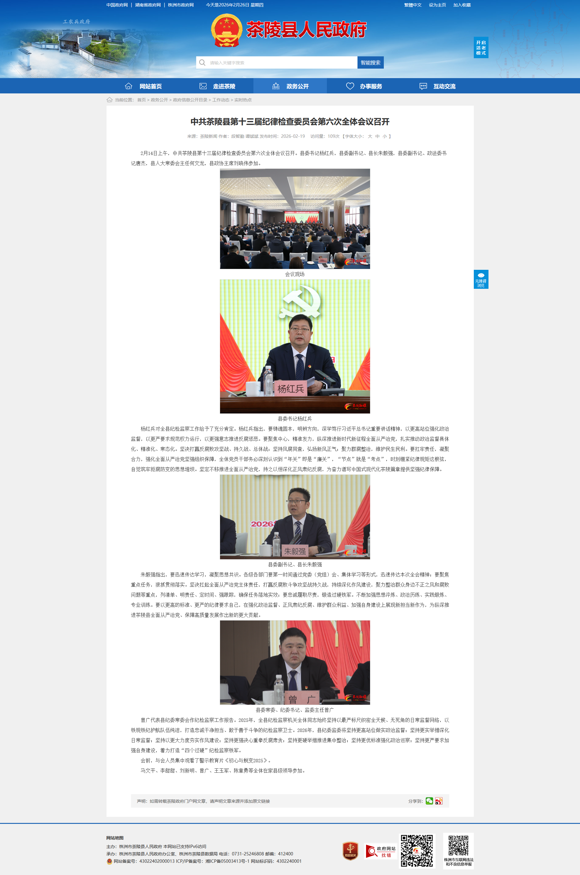 2月14日上午,中共茶陵县第十三届纪律检查委员会第六次全体会议召开。县委书记杨红兵,县委副书记、县长朱毅强,县委副书记、政法委书记唐杰,县人大常委会主任何文龙,县政协主席刘晓伟参加。