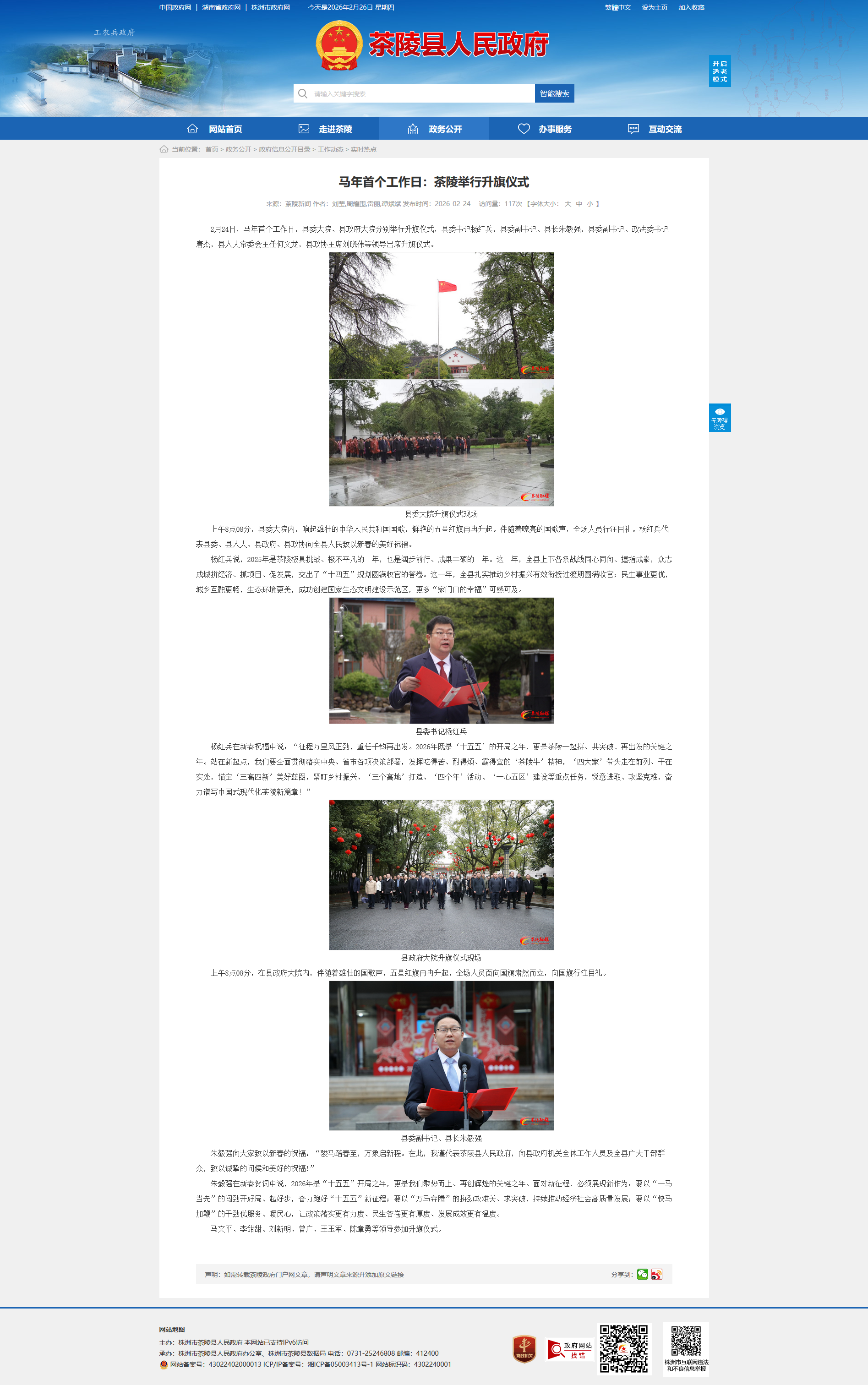 杨红兵在新春祝福中说:“征程万里风正劲,重任千钧再出发。2026年既是‘十五五’的开局之年,更是茶陵一起拼、共突破、再出发的关键之年。站在新起点,我们要全面贯彻落实中央、省市各项决策部署,发挥吃得苦、耐得烦、霸得蛮的‘茶陵牛’精神,‘四大家’带头走在前列、干在实处,锚定‘三高四新’美好蓝图,紧盯乡村振兴、‘三个高地’打造、‘四个年’活动、‘一心五区’建设等重点任务,锐意进取、攻坚克难,奋力谱写中国式现代化茶陵新篇章!”