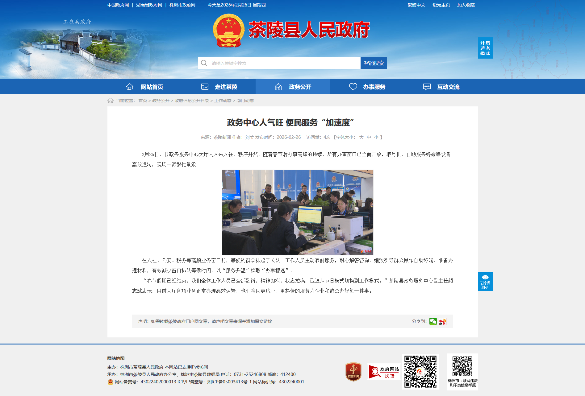 “春节假期已经结束,我们全体工作人员已全部到岗,精神饱满,状态拉满,迅速从节日模式切换到工作模式。”茶陵县政务服务中心副主任颜志斌表示,目前大厅各项业务正常办理高效运转,他们将以更贴心、更热情的服务为企业和群众办好每一件事。