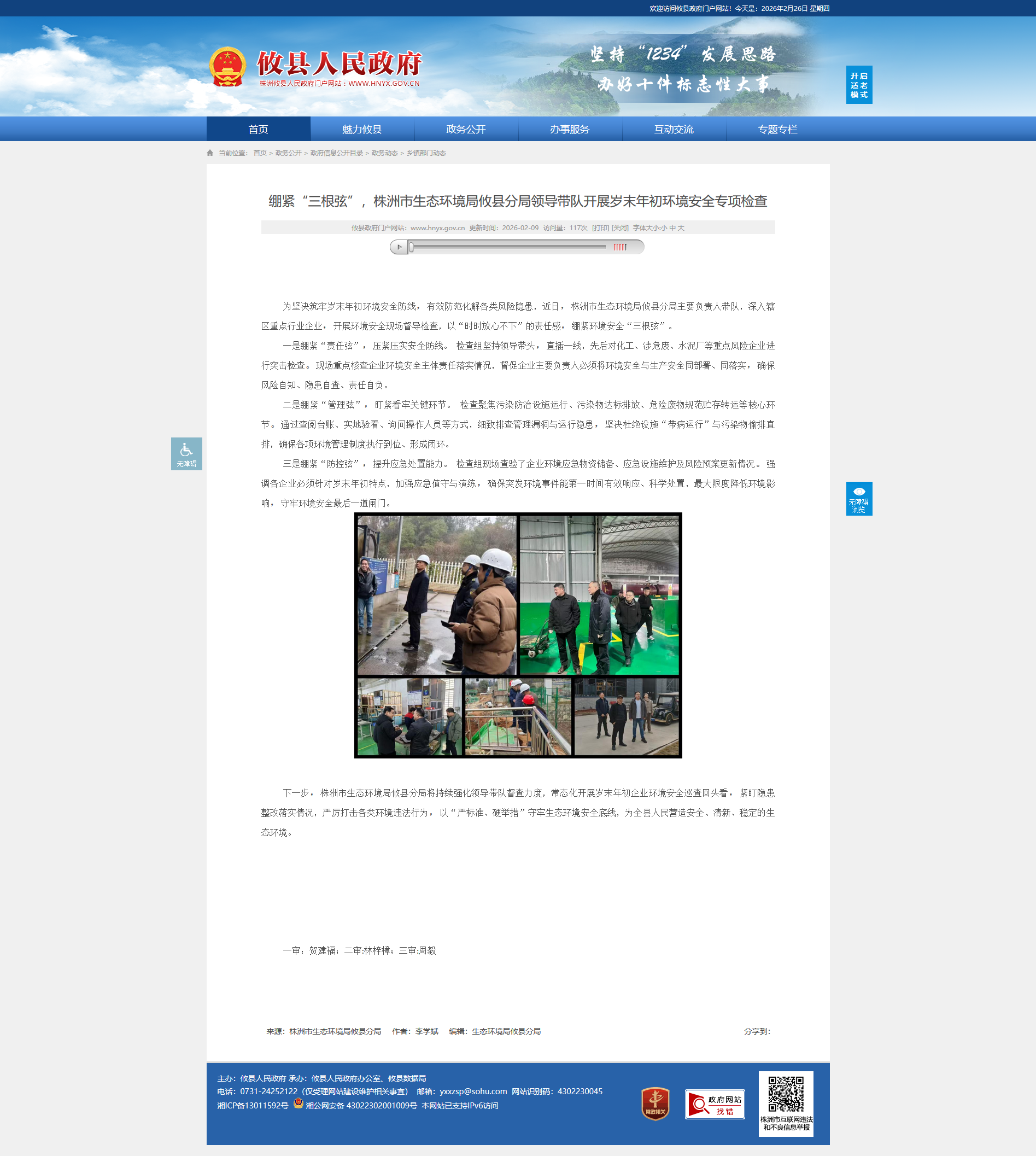 为坚决筑牢岁末年初环境安全防线,有效防范化解各类风险隐患,近日,株洲市生态环境局攸县分局主要负责人带队,深入辖区重点行业企业,开展环境安全现场督导检查,以“时时放心不下”的责任感,绷紧环境安全“三根弦”。