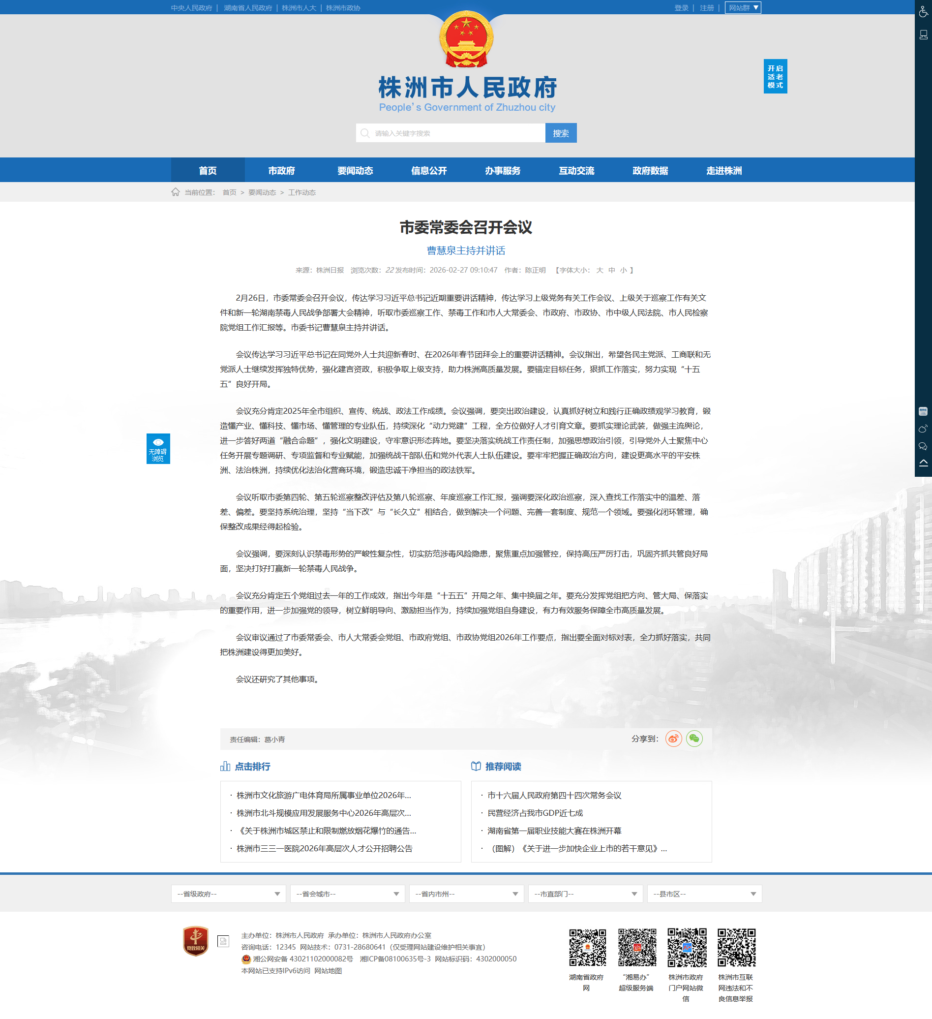 会议审议通过了市委常委会、市人大常委会党组、市政府党组、市政协党组2026年工作要点,指出要全面对标对表,全力抓好落实,共同把株洲建设得更加美好。