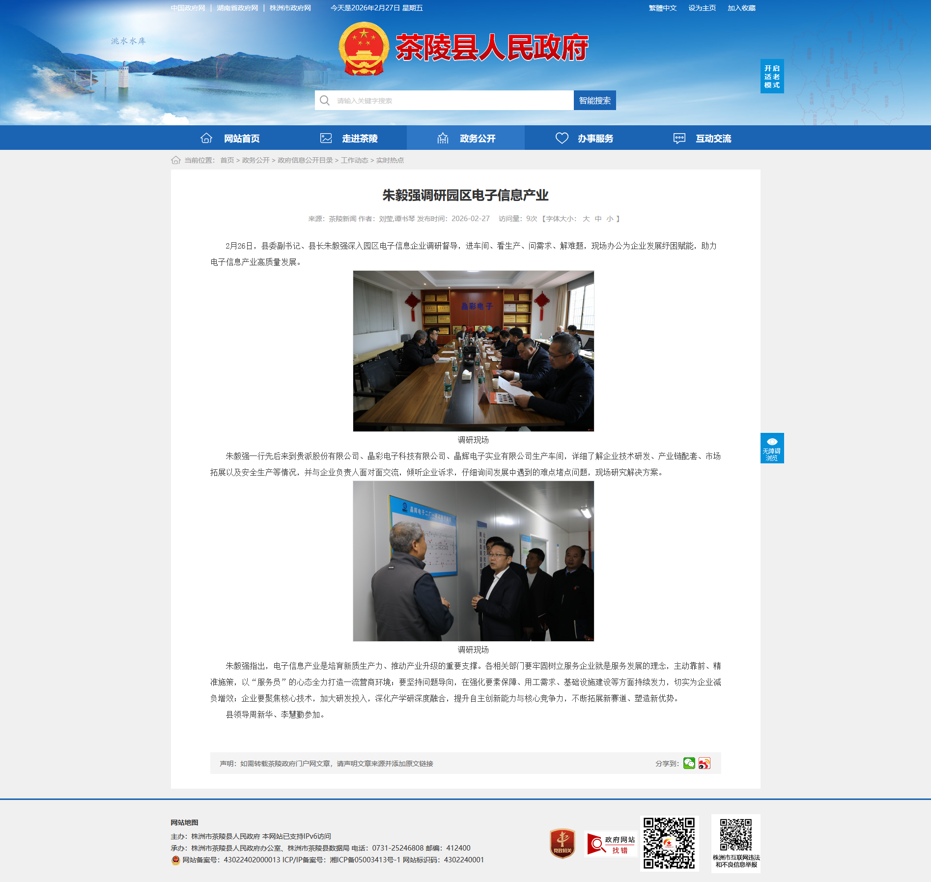 2月26日,县委副书记、县长朱毅强深入园区电子信息企业调研督导,进车间、看生产、问需求、解难题,现场办公为企业发展纾困赋能,助力电子信息产业高质量发展。