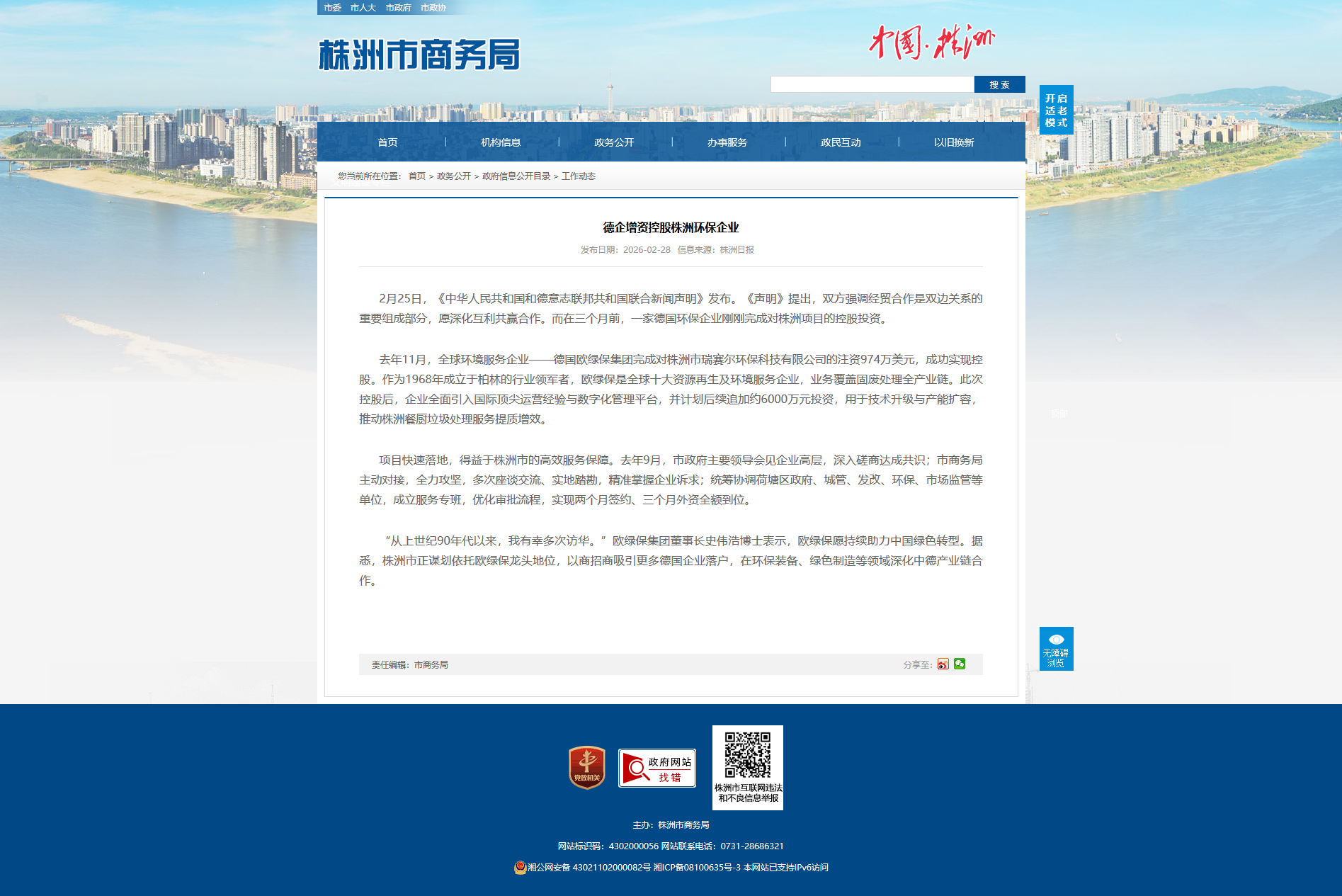 2月25日,《中华人民共和国和德意志联邦共和国联合新闻声明》发布。《声明》提出,双方强调经贸合作是双边关系的重要组成部分,愿深化互利共赢合作。而在三个月前,一家德国环保企业刚刚完成对株洲项目的控股投资。