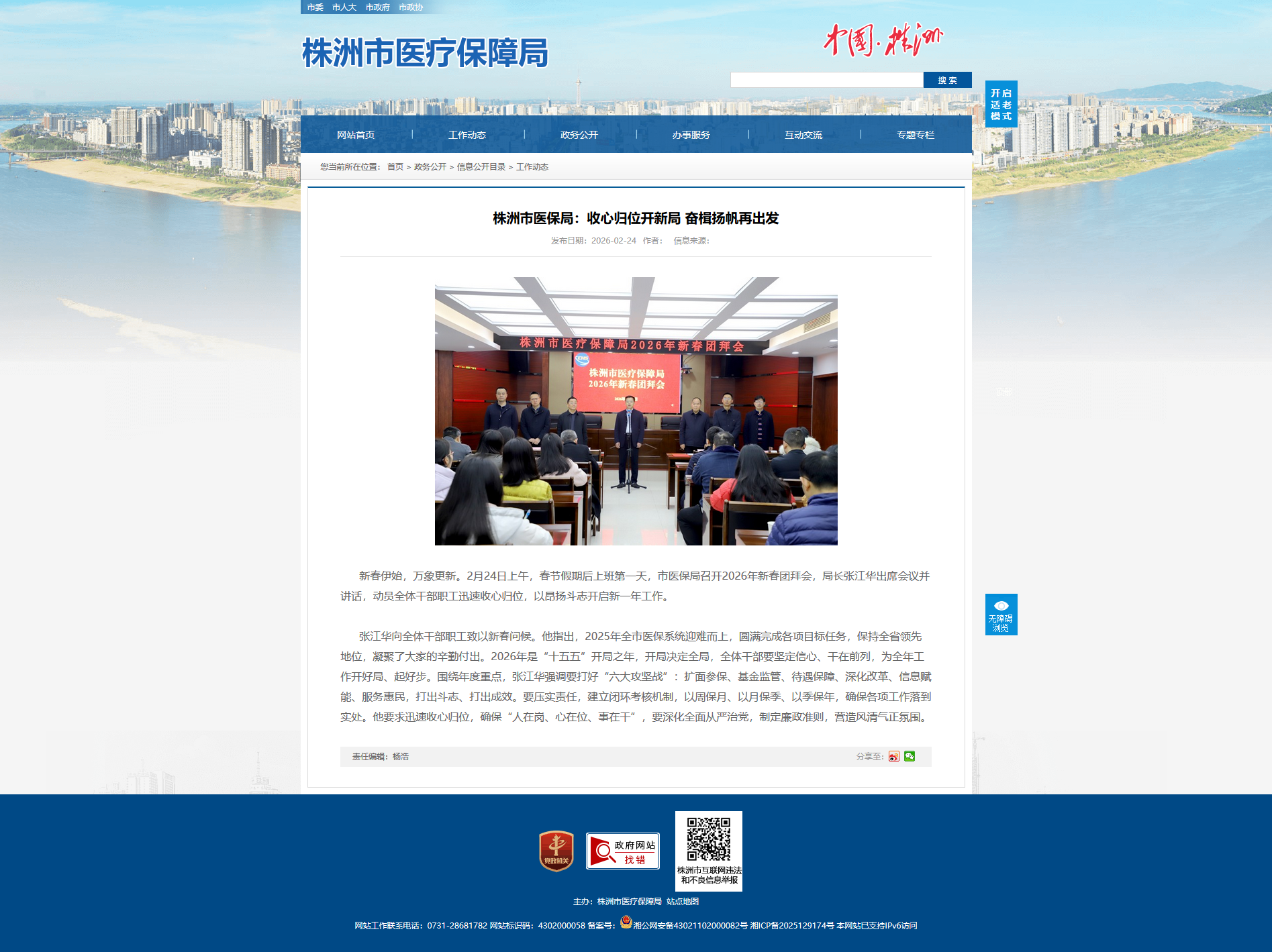 新春伊始,万象更新。2月24日上午,春节假期后上班第一天,市医保局召开2026年新春团拜会,局长张江华出席会议并讲话,动员全体干部职工迅速收心归位,以昂扬斗志开启新一年工作。