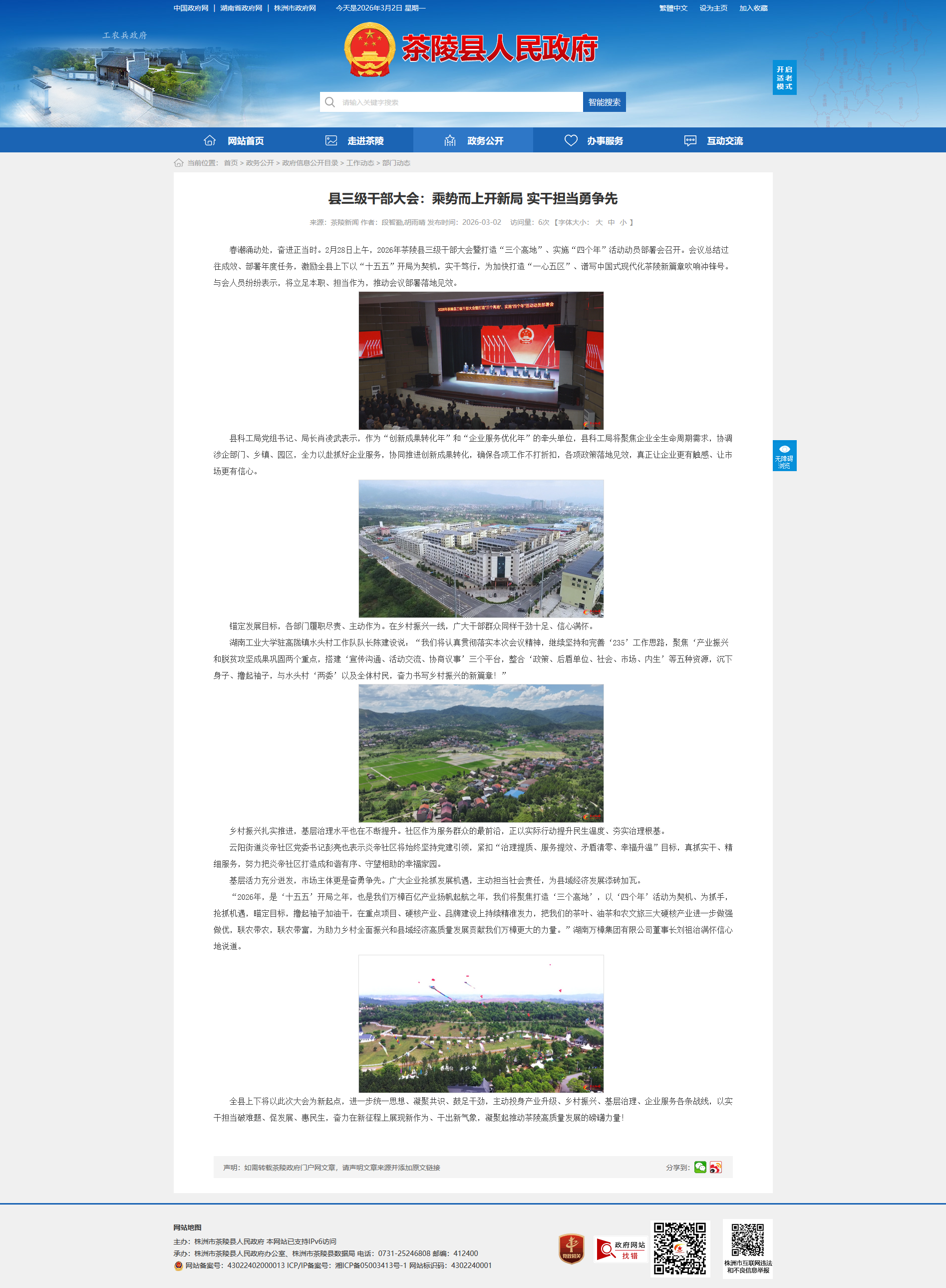 春潮涌动处,奋进正当时。2月28日上午,2026年茶陵县三级干部大会暨打造“三个高地”、实施“四个年”活动动员部署会召开。会议总结过往成效、部署年度任务,激励全县上下以“十五五”开局为契机,实干笃行,为加快打造“一心五区”、谱写中国式现代化茶陵新篇章吹响冲锋号。与会人员纷纷表示,将立足本职、担当作为,推动会议部署落地见效。