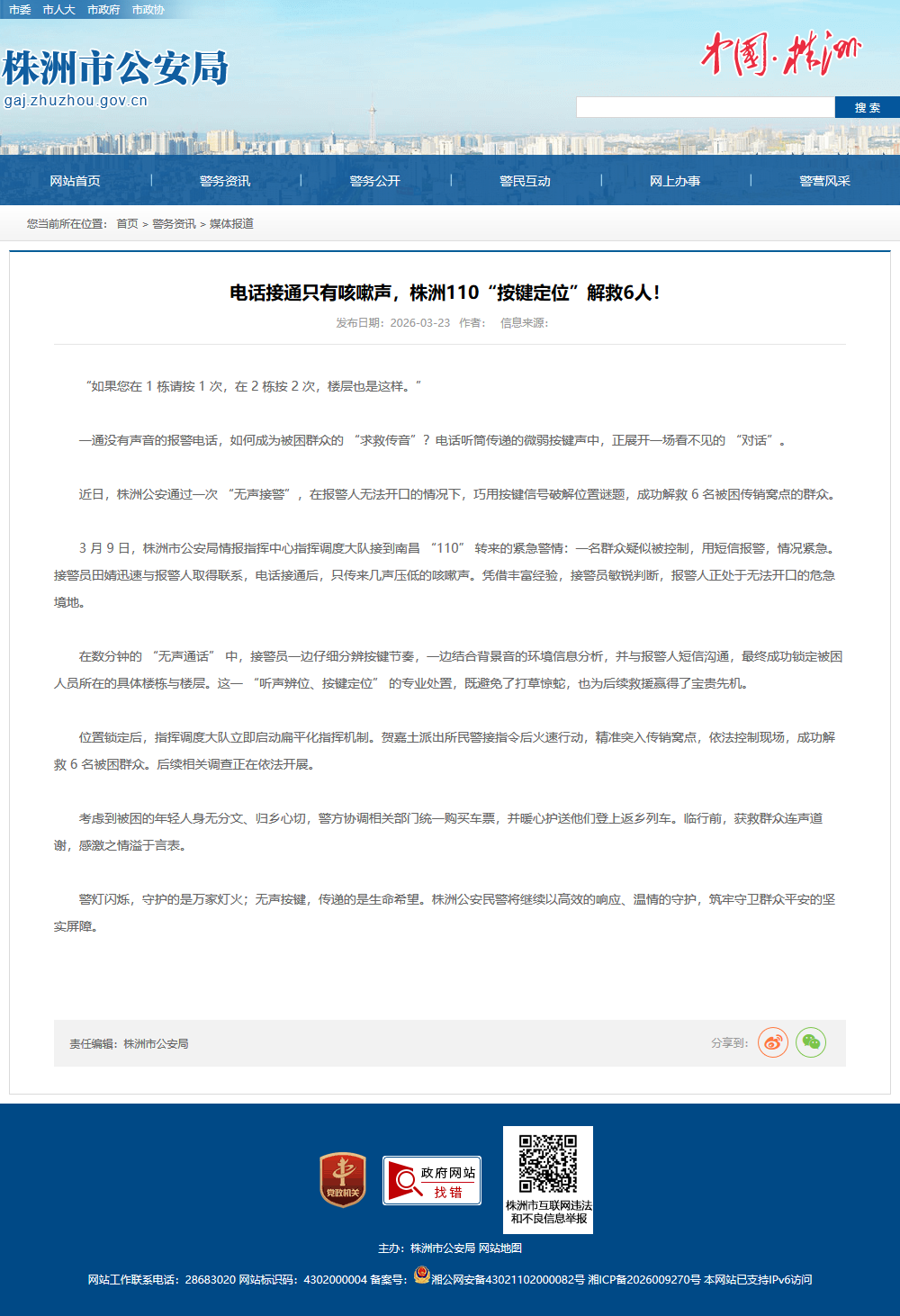 警灯闪烁,守护的是万家灯火;无声按键,传递的是生命希望。株洲公安民警将继续以高效的响应、温情的守护,筑牢守卫群众平安的坚实屏障。