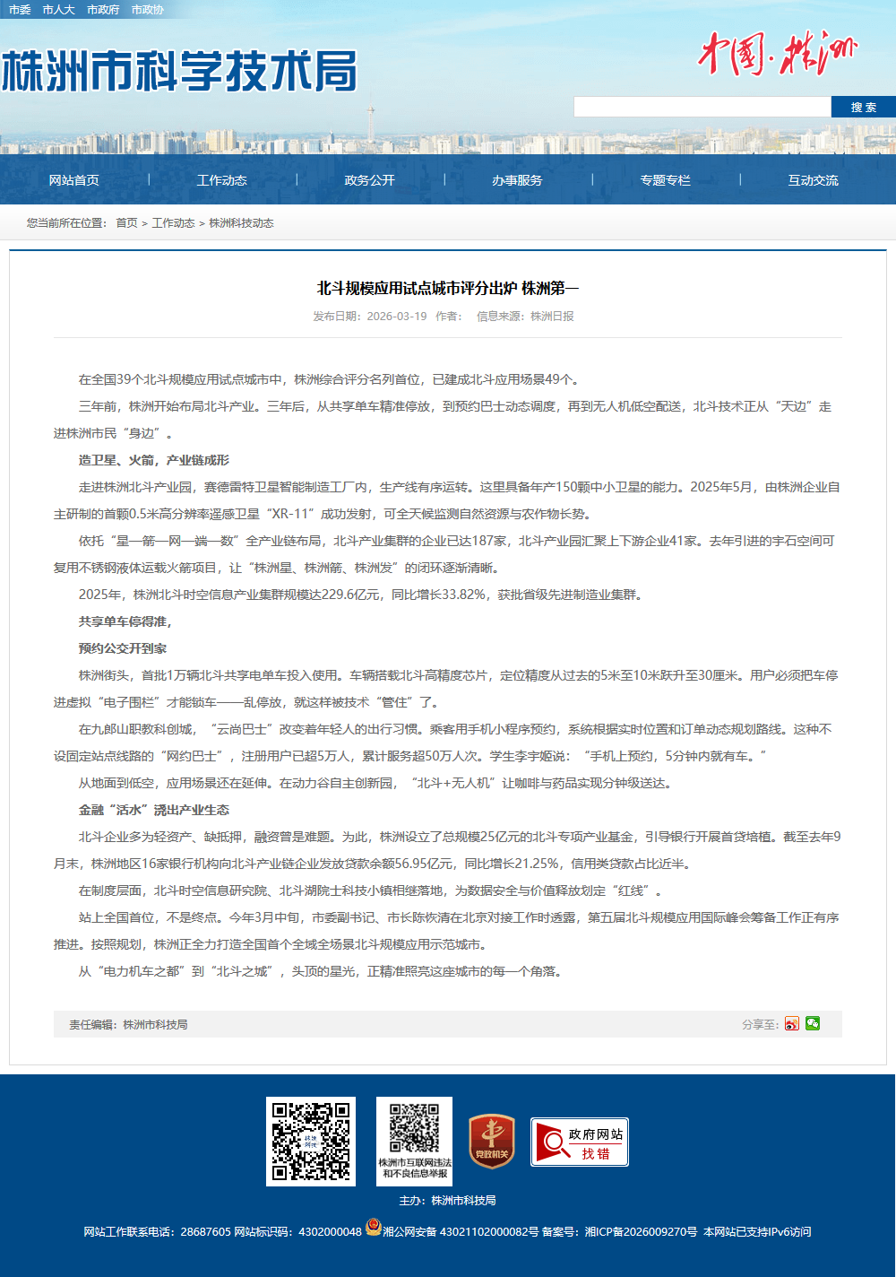 在全国39个北斗规模应用试点城市中,株洲综合评分名列首位,已建成北斗应用场景49个。