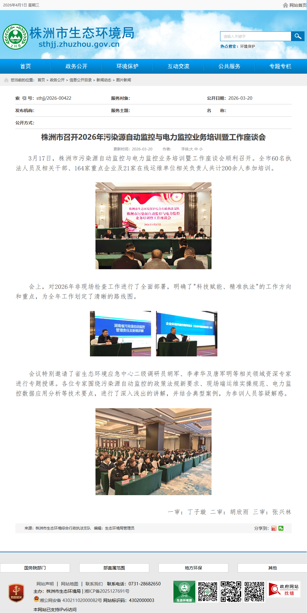 3月17日,株洲市污染源自动监控与电力监控业务培训暨工作座谈会顺利召开。全市60名执法人员及相关干部、164家重点企业及21家在线运维单位相关负责人共计200余人参加培训。