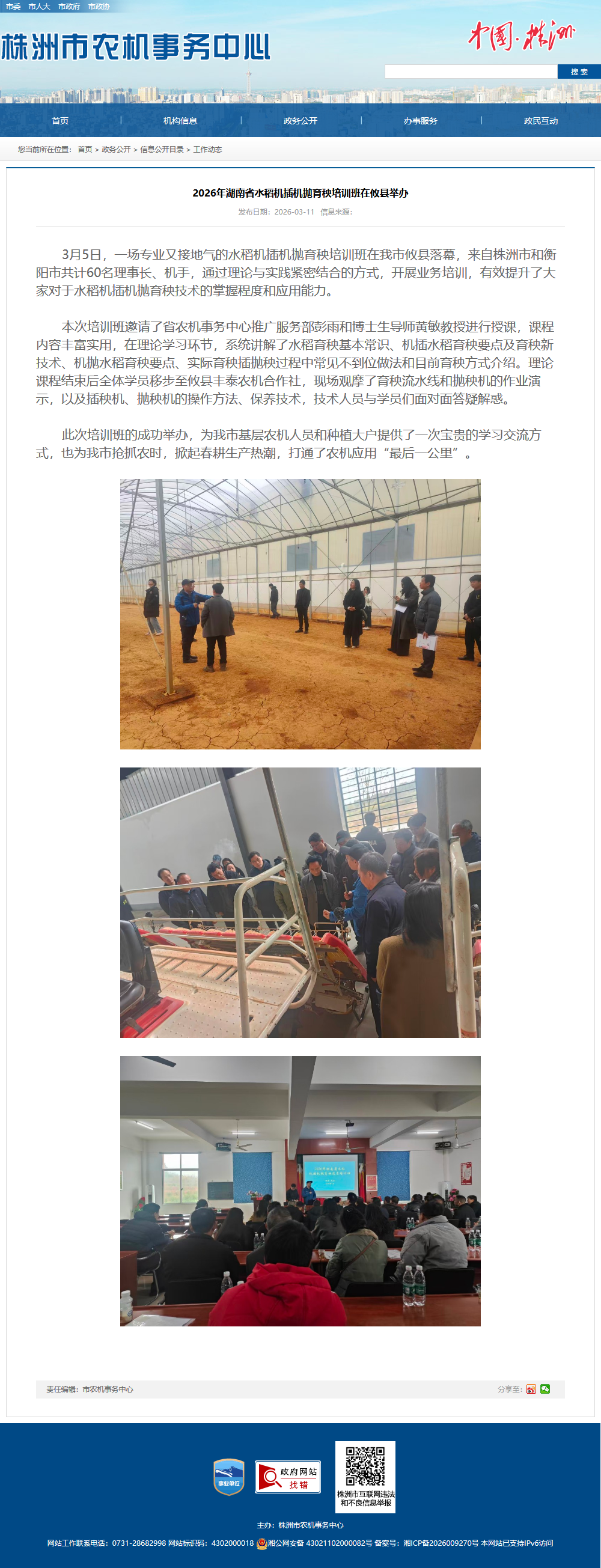 3月5日,一场专业又接地气的水稻机插机抛育秧培训班在我市攸县落幕,来自株洲市和衡阳市共计60名理事长、机手,通过理论与实践紧密结合的方式,开展业务培训,有效提升了大家对于水稻机插机抛育秧技术的掌握程度和应用能力。