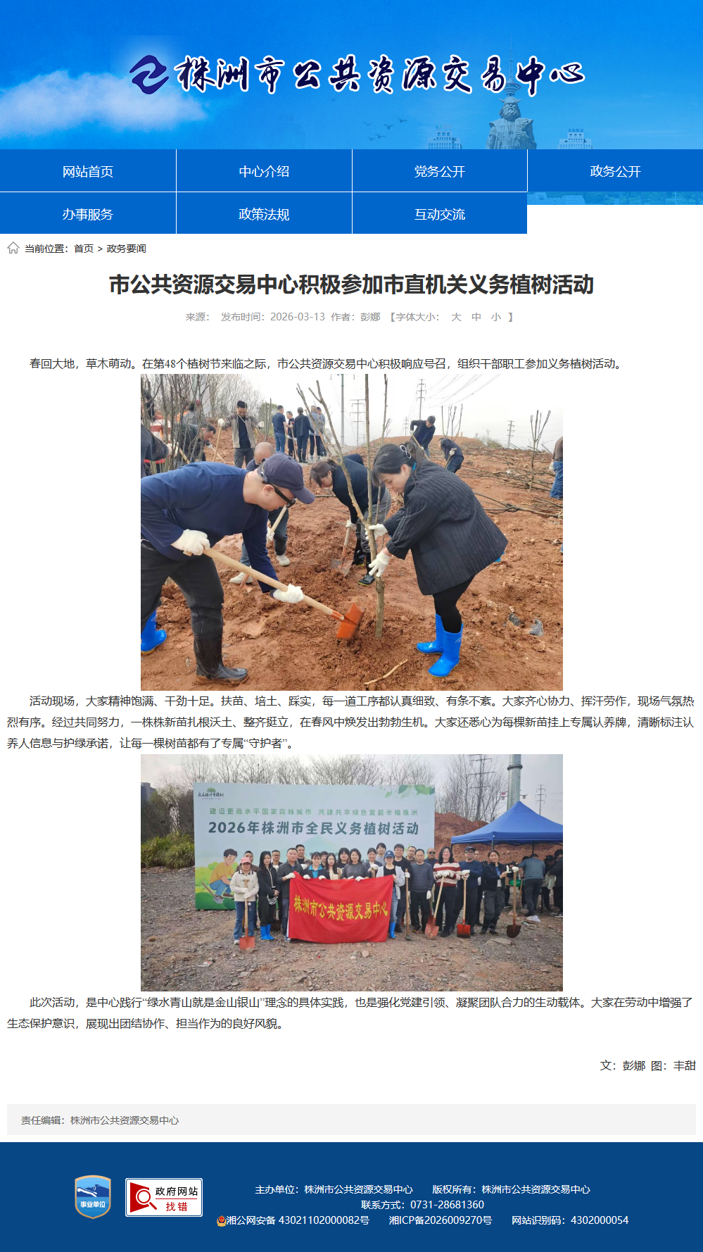 春回大地,草木萌动。在第48个植树节来临之际,市公共资源交易中心积极响应号召,组织干部职工参加义务植树活动。