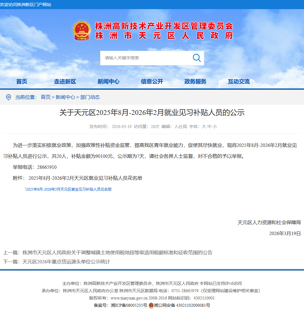 时间:2026-03-19 11:13:06 来源: 株洲市天元区人民政府 来源截图