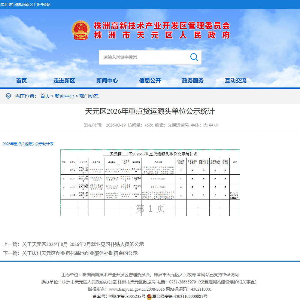 天元区2026年重点货运源头单位公示统计