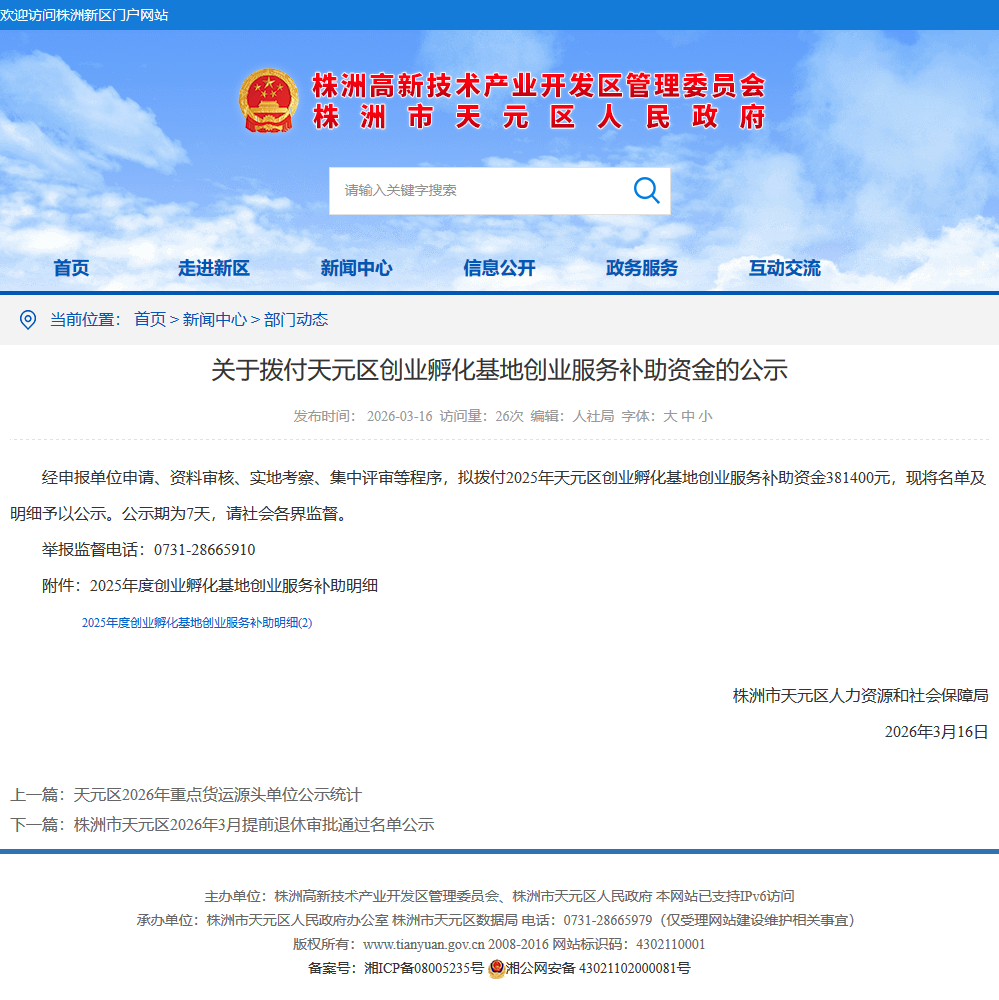 时间:2026-03-16 11:40:22 来源: 株洲市天元区人民政府 来源截图