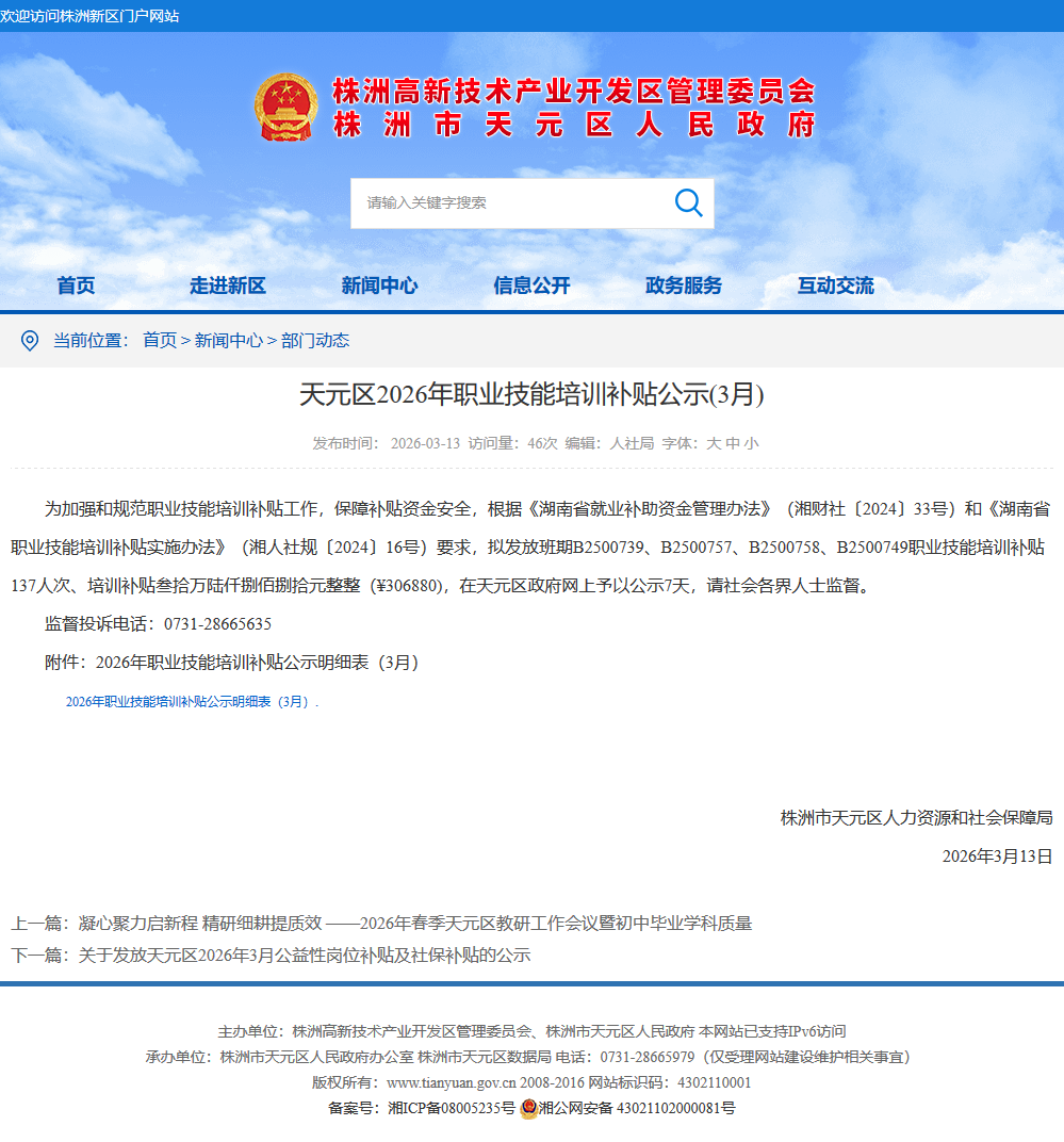 时间:2026-03-13 10:03:06 来源: 株洲市天元区人民政府 来源截图