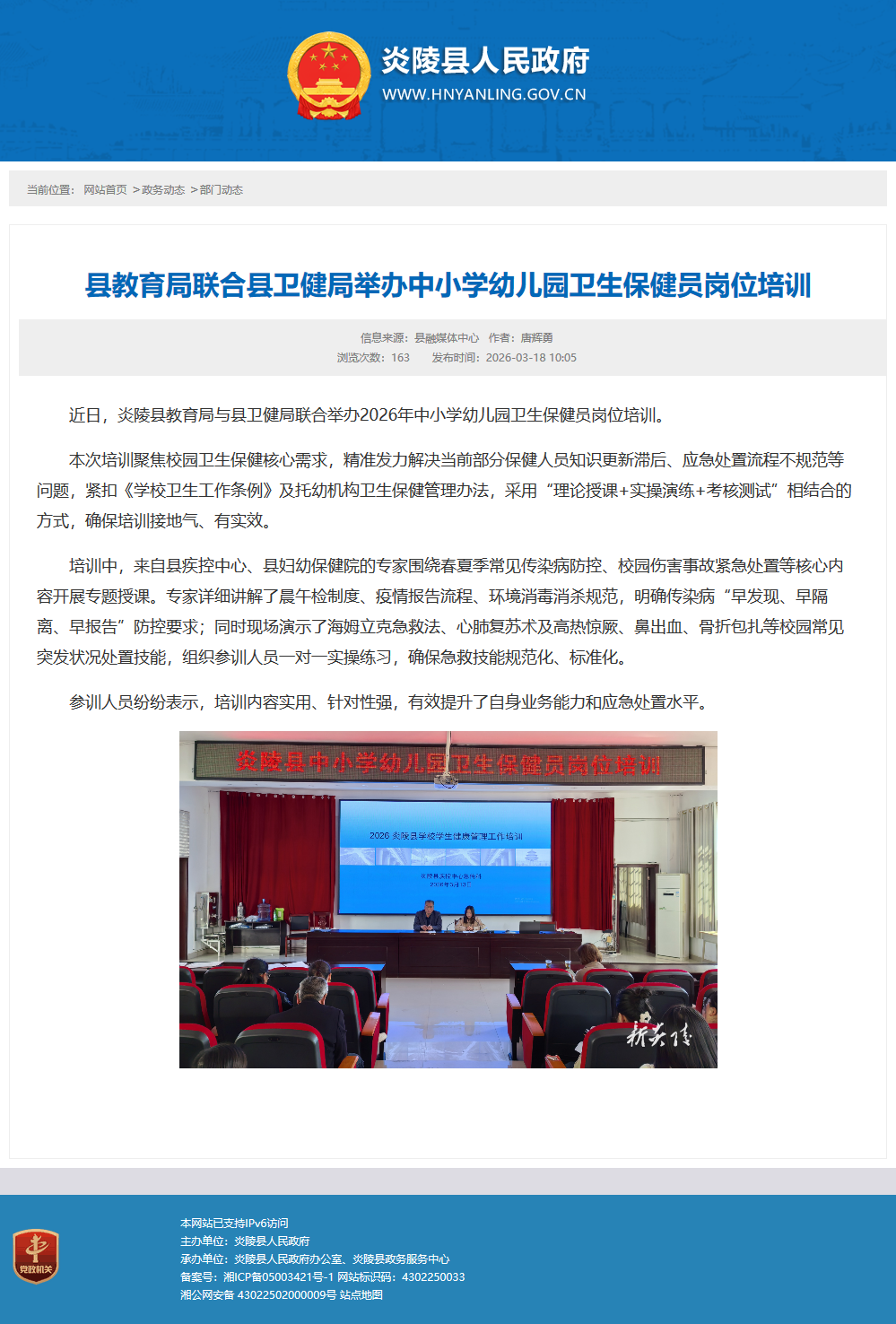 近日,炎陵县教育局与县卫健局联合举办2026年中小学幼儿园卫生保健员岗位培训。