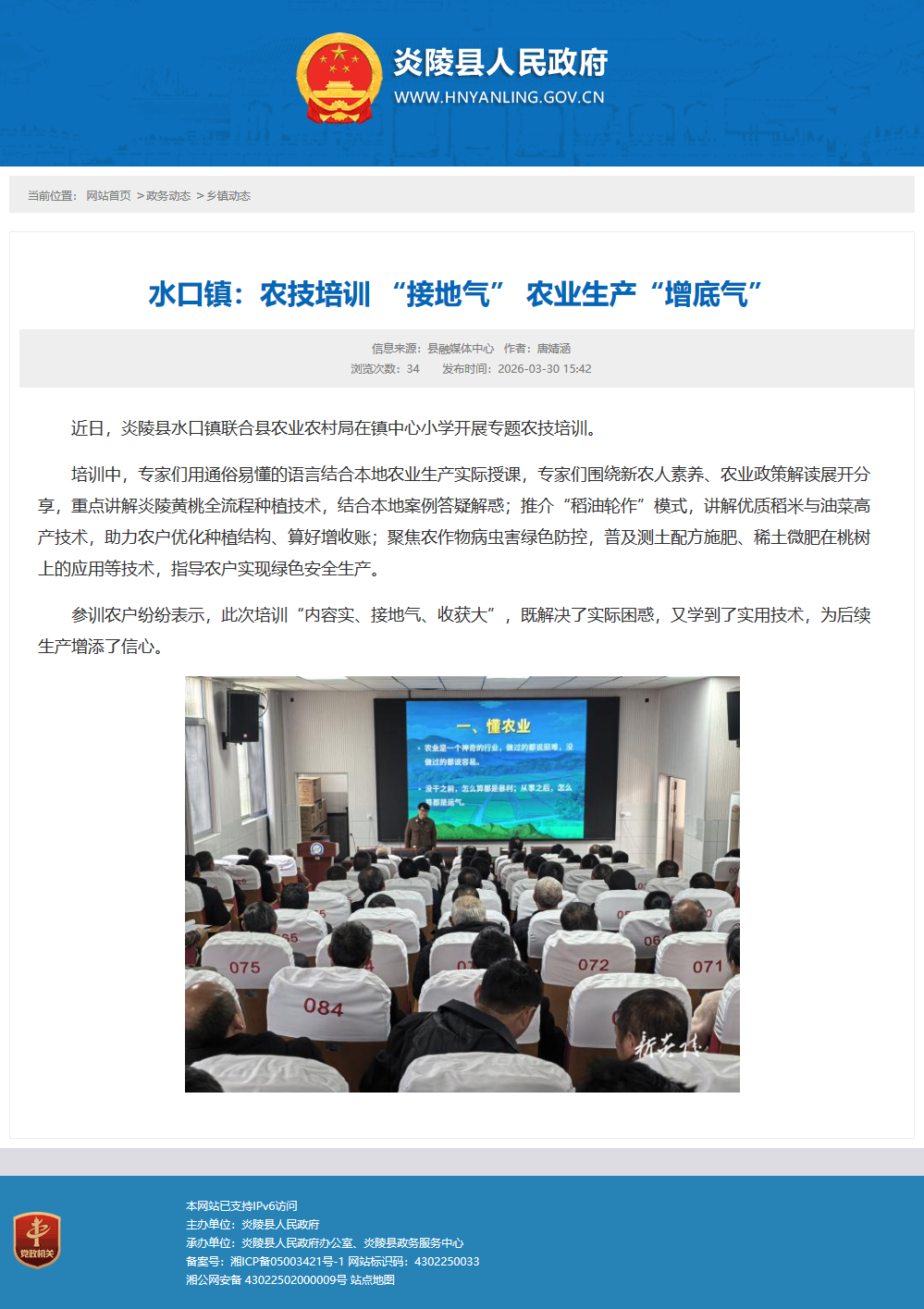 近日,炎陵县水口镇联合县农业农村局在镇中心小学开展专题农技培训。