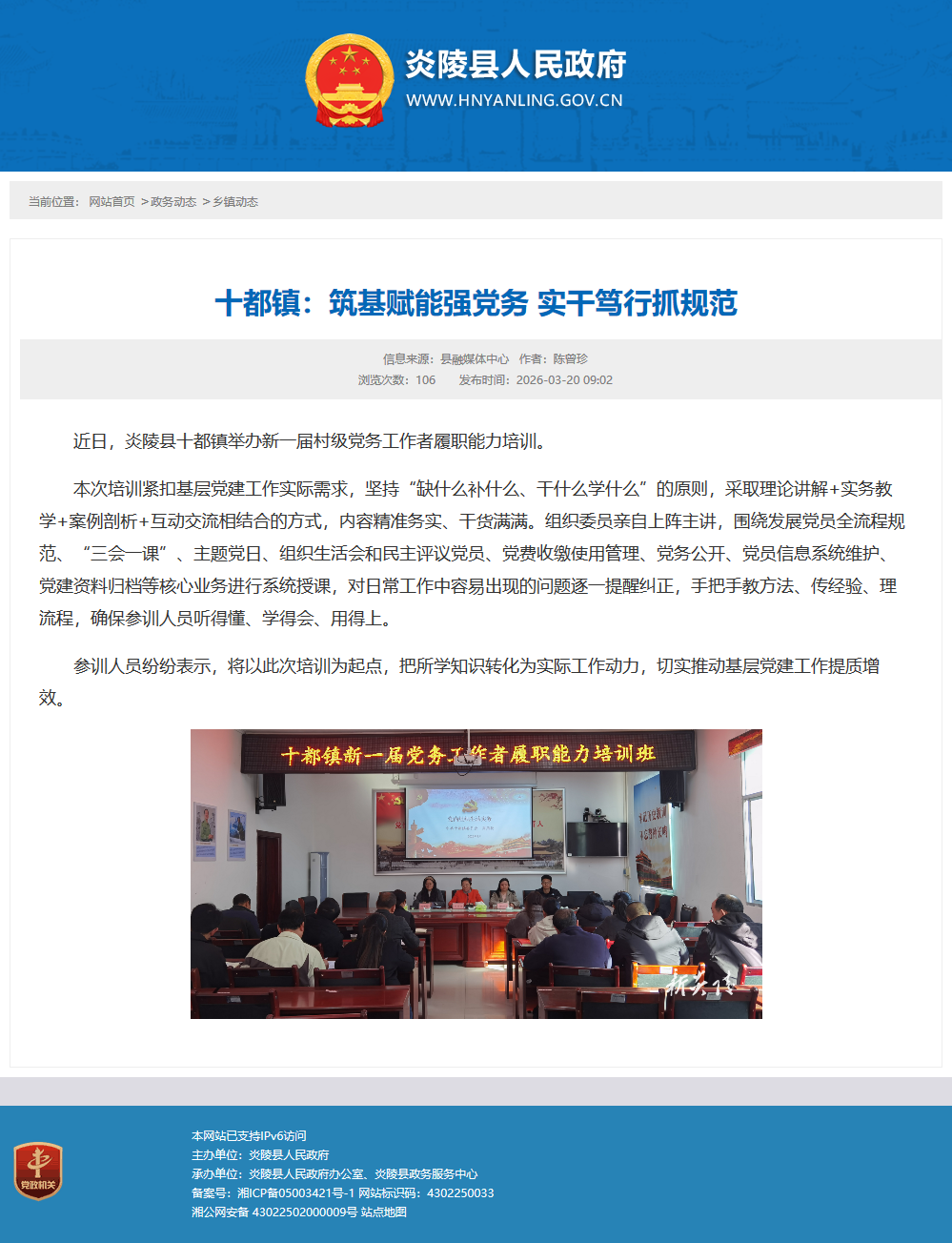 近日,炎陵县十都镇举办新一届村级党务工作者履职能力培训。